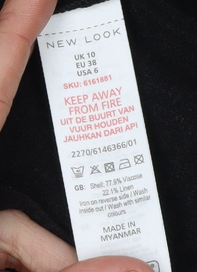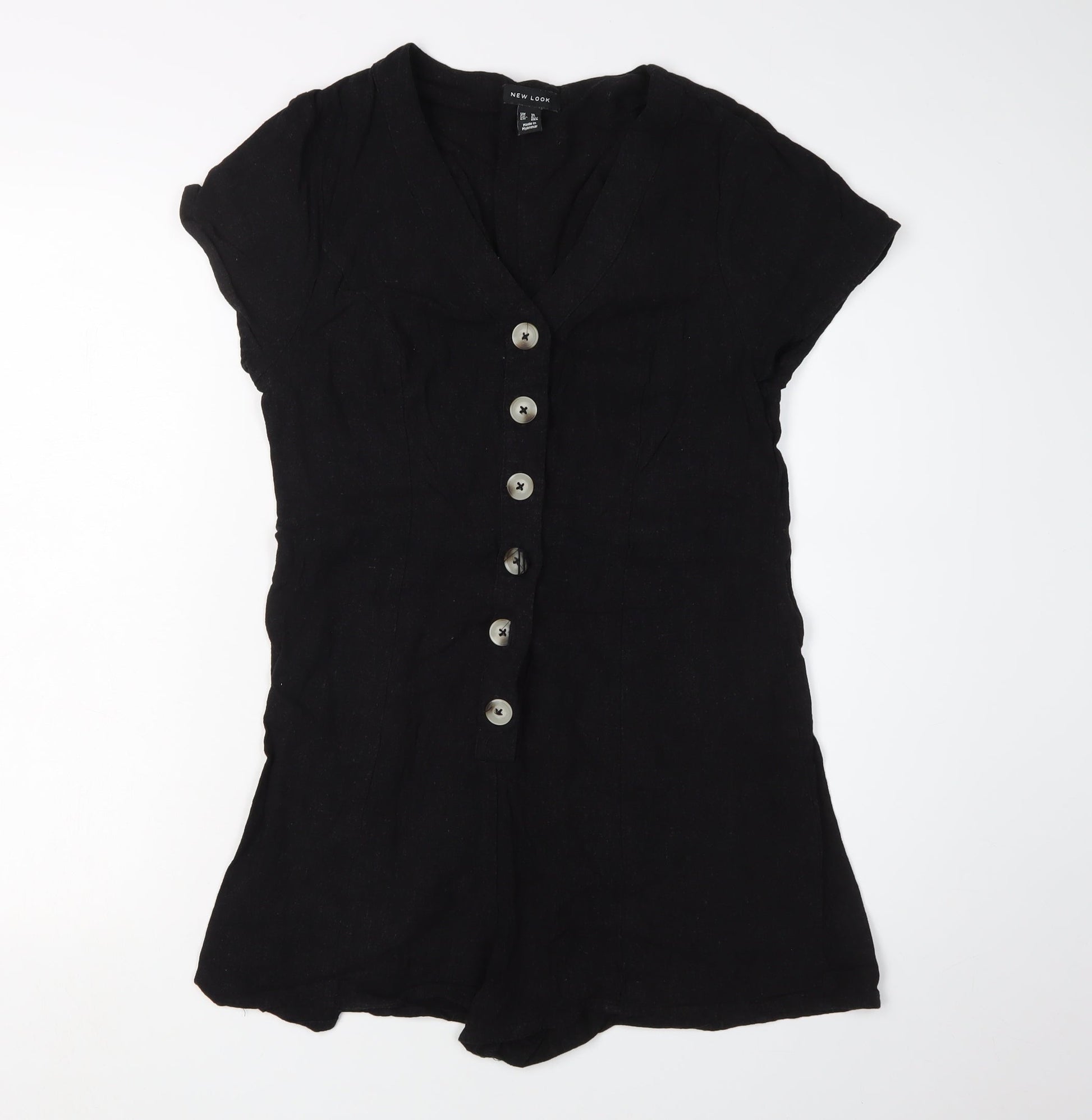New Look Women's Black Playsuit Size 10 Viscose Linen