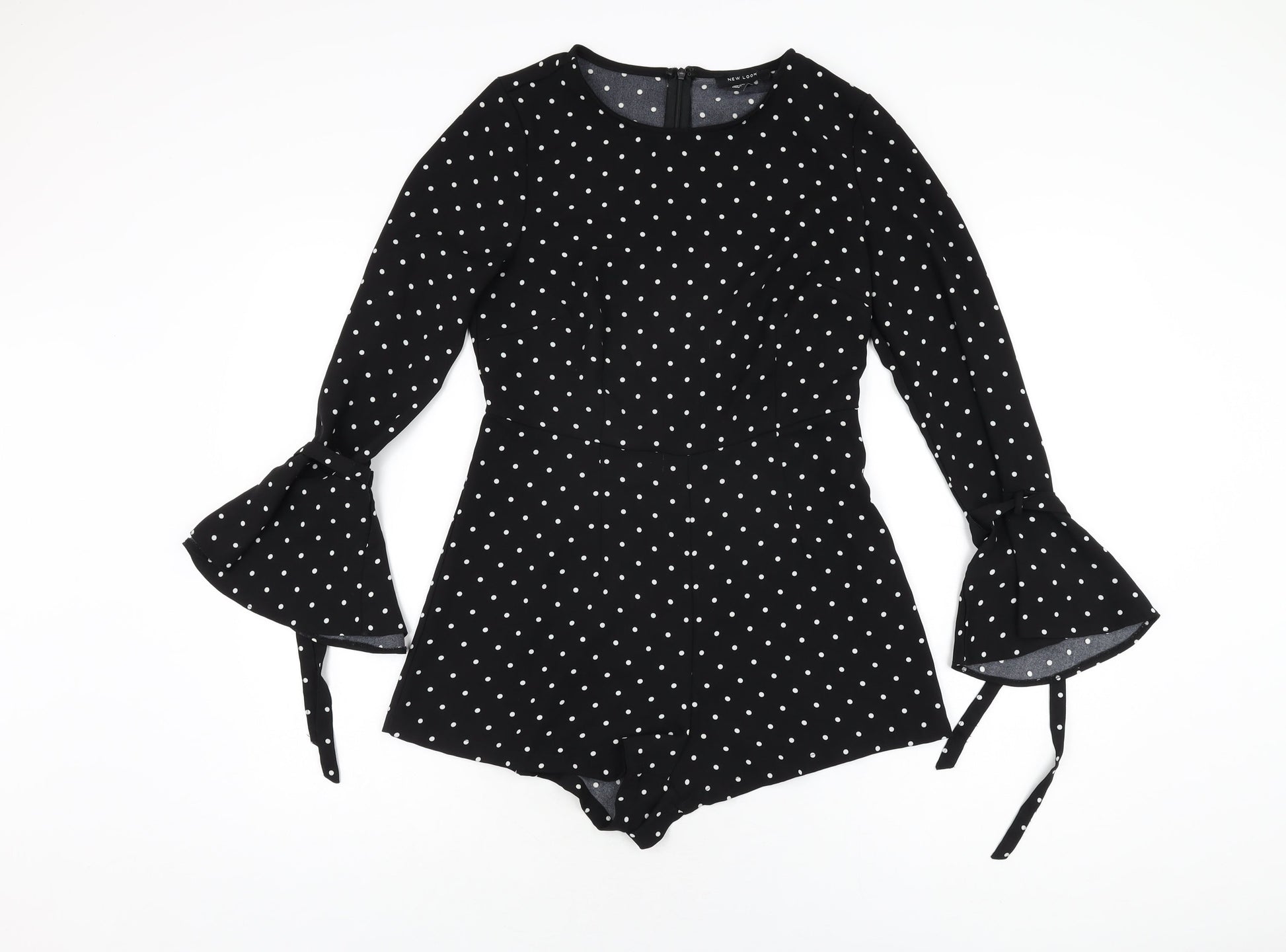 New Look Womens Black Polka Dot Polyester Playsuit One-Piece Size 8 Zip