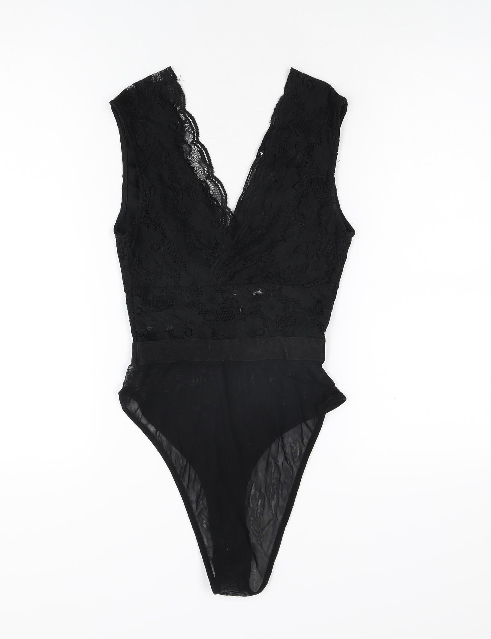 New Look Womens Black Polyamide Bodysuit One-Piece Size 6 Snap