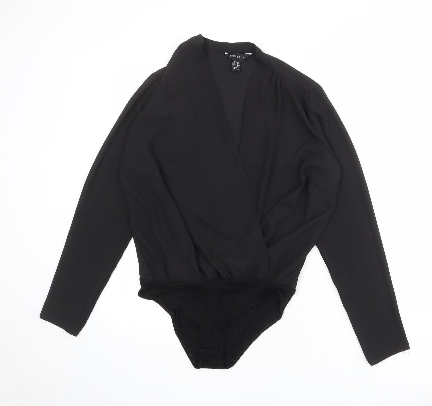 New Look Womens Black Polyester Bodysuit One-Piece Size 10 Snap