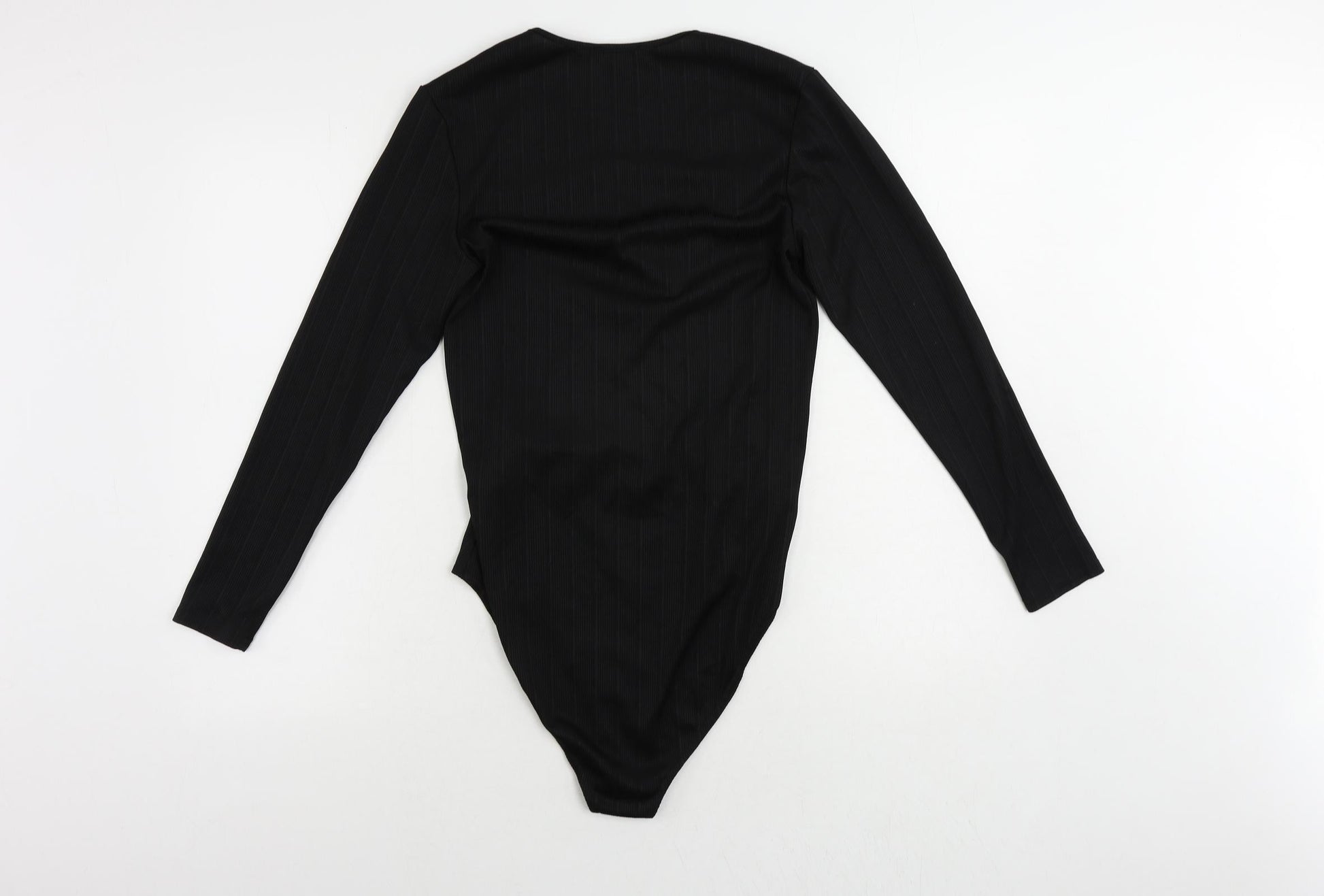 New Look Womens Black Polyester Bodysuit One-Piece Size 12 Snap