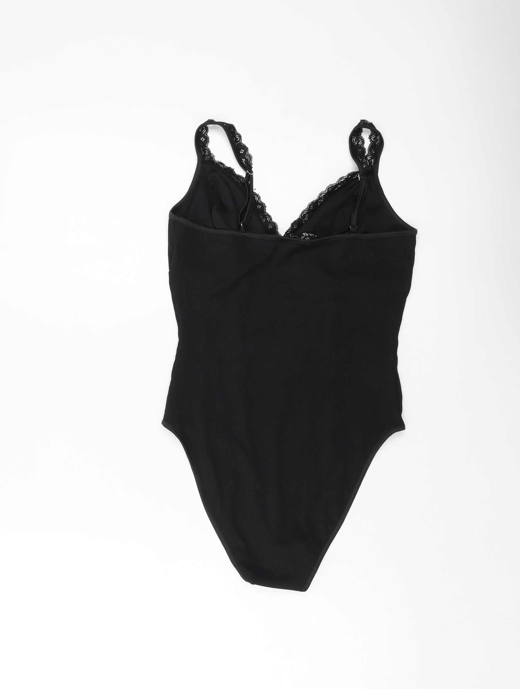 New Look Womens Black Polyester Bodysuit One-Piece Size 12 Snap