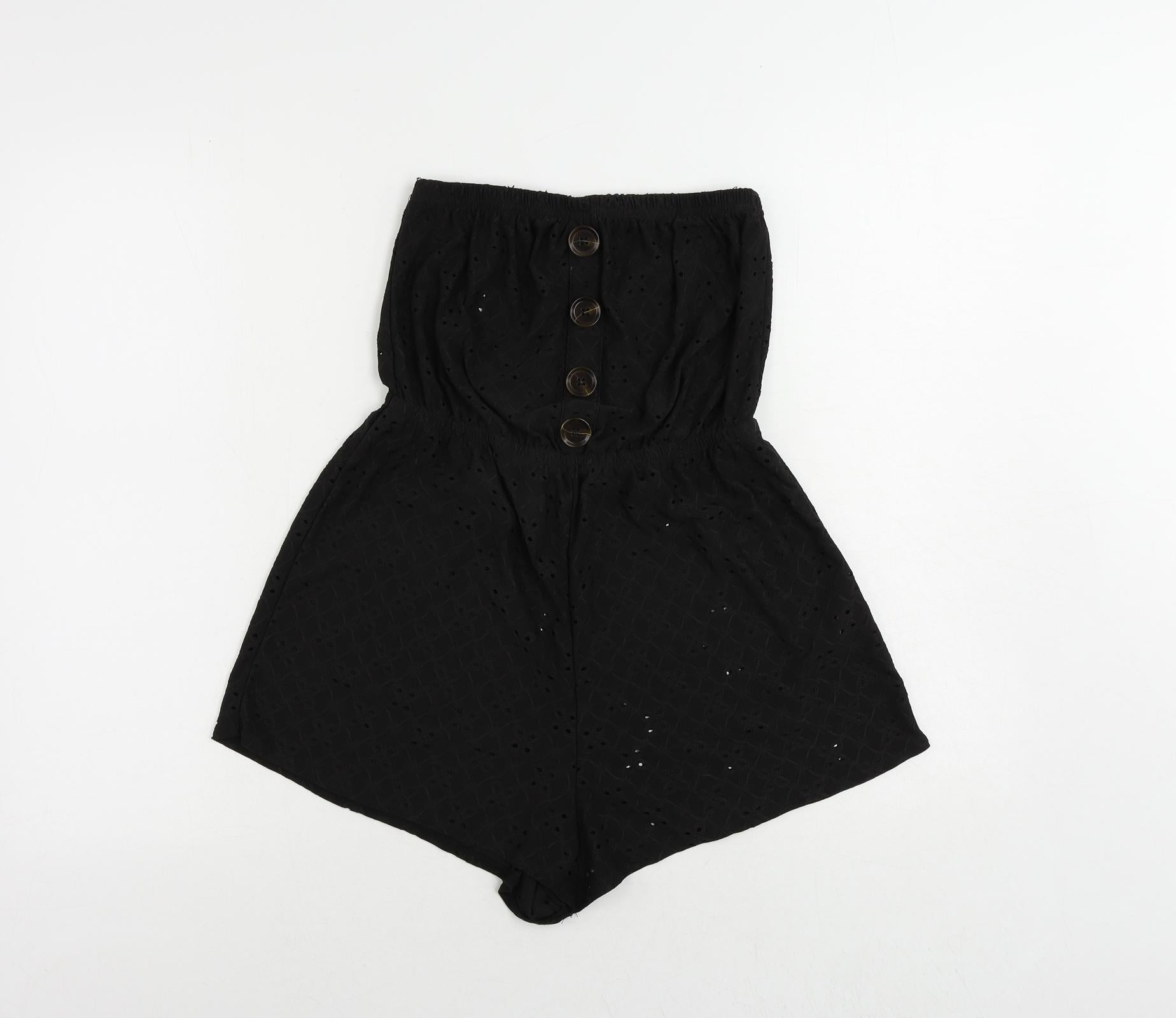 New Look Womens Black Polyester Playsuit One-Piece Size S Pullover - Broderie Anglaise