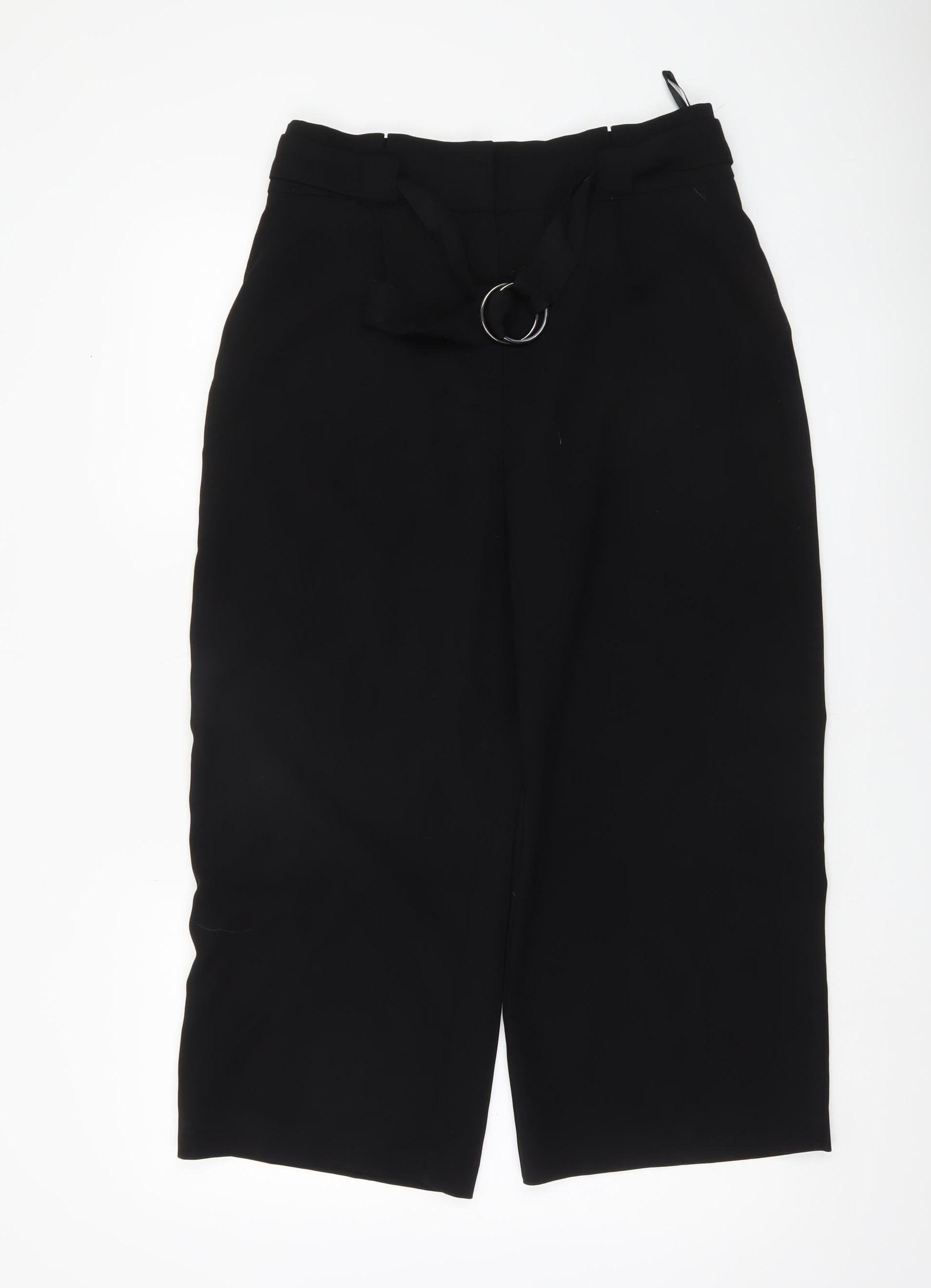 New Look Womens Black Size 12 Cropped Wide Leg Belted Trousers