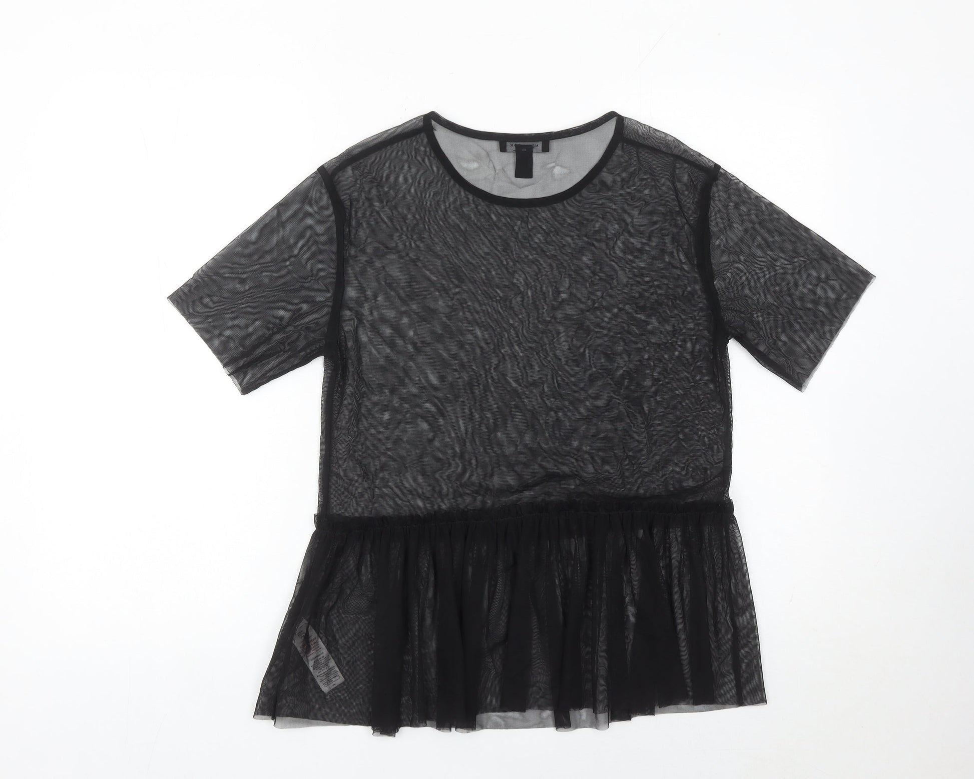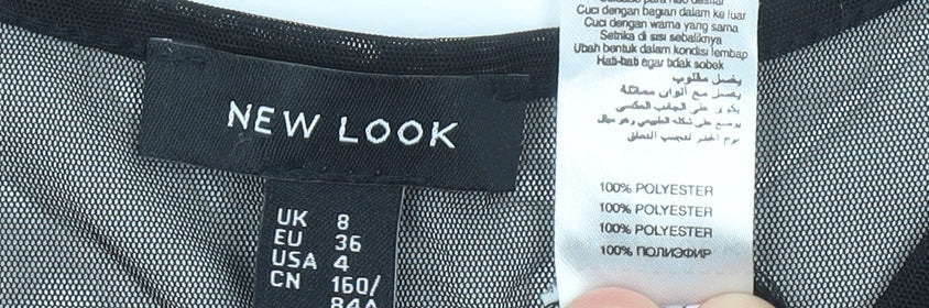 New Look Womens Black Size 8 Mesh Ruffle Hem Tunic Blouse