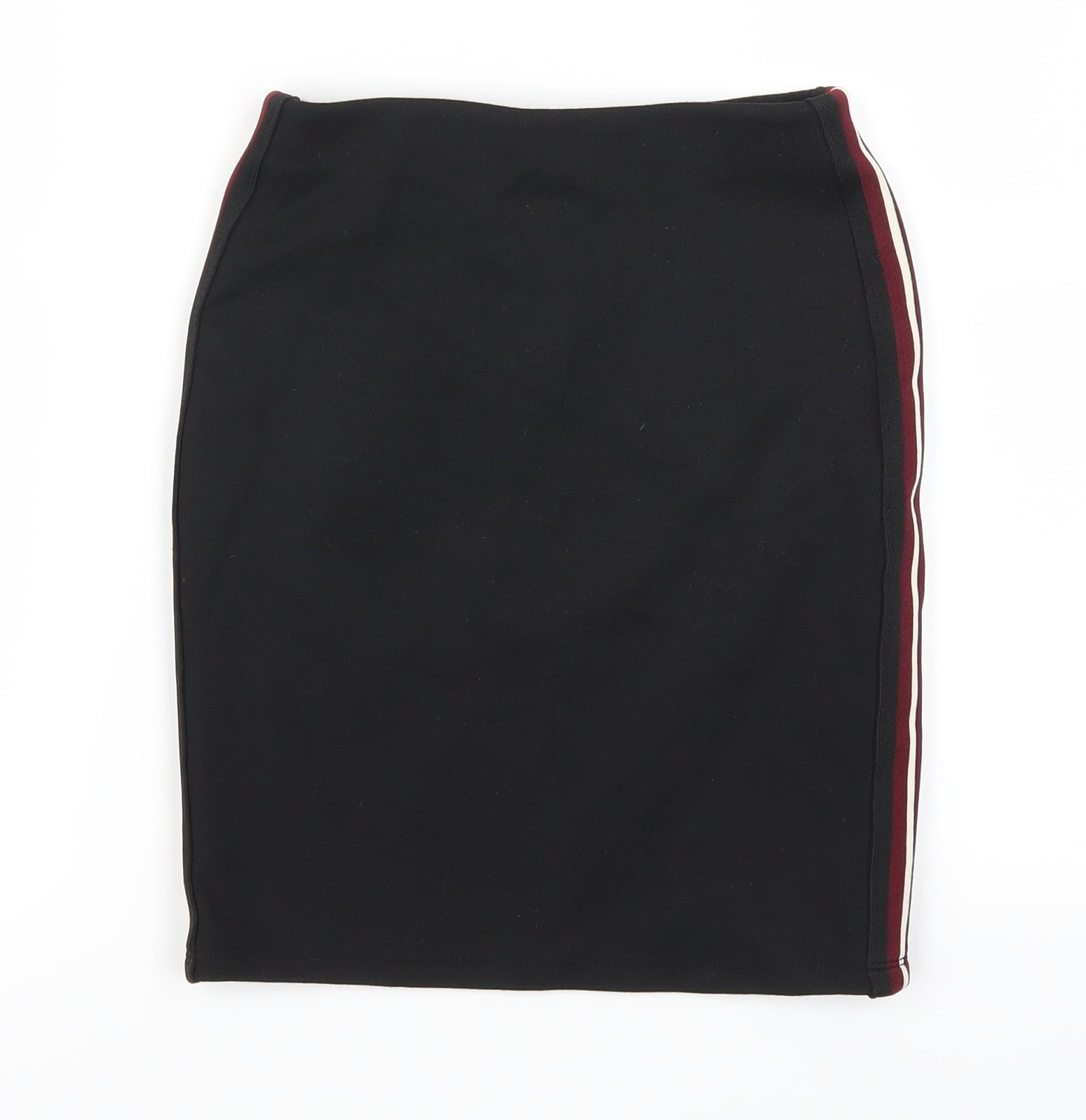 New Look Womens Black Straight & Pencil Skirt Size 4 - Red Side Stripe