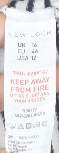 New Look Womens Black Stripe Cotton T-Shirt Size 16 Sleeveless