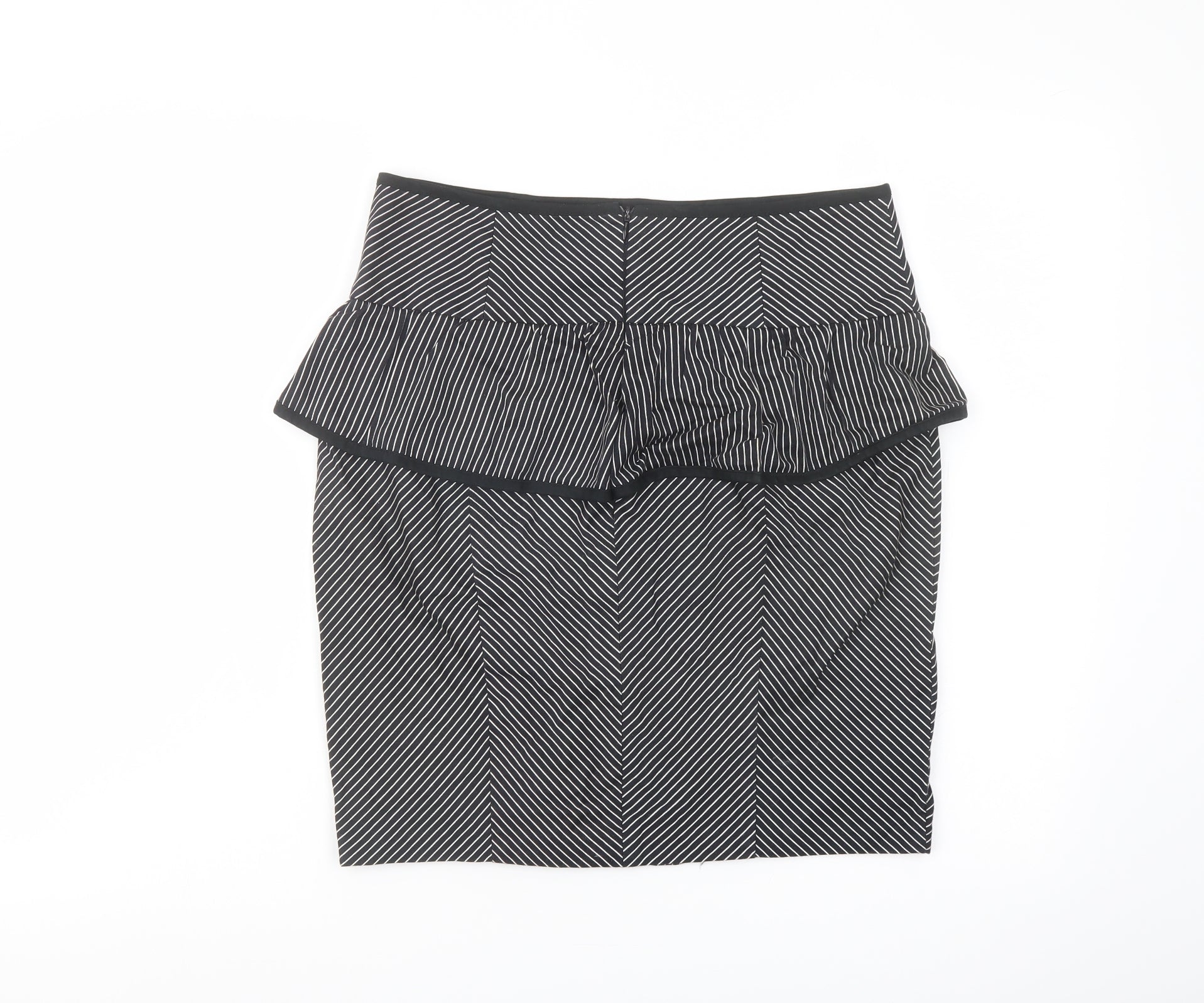 New Look Womens Black Striped Cotton A-Line Skirt Size 10 Zip