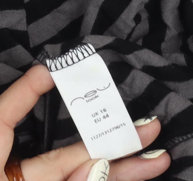 New Look Women's Black Striped High Neck T-Shirt Size 16