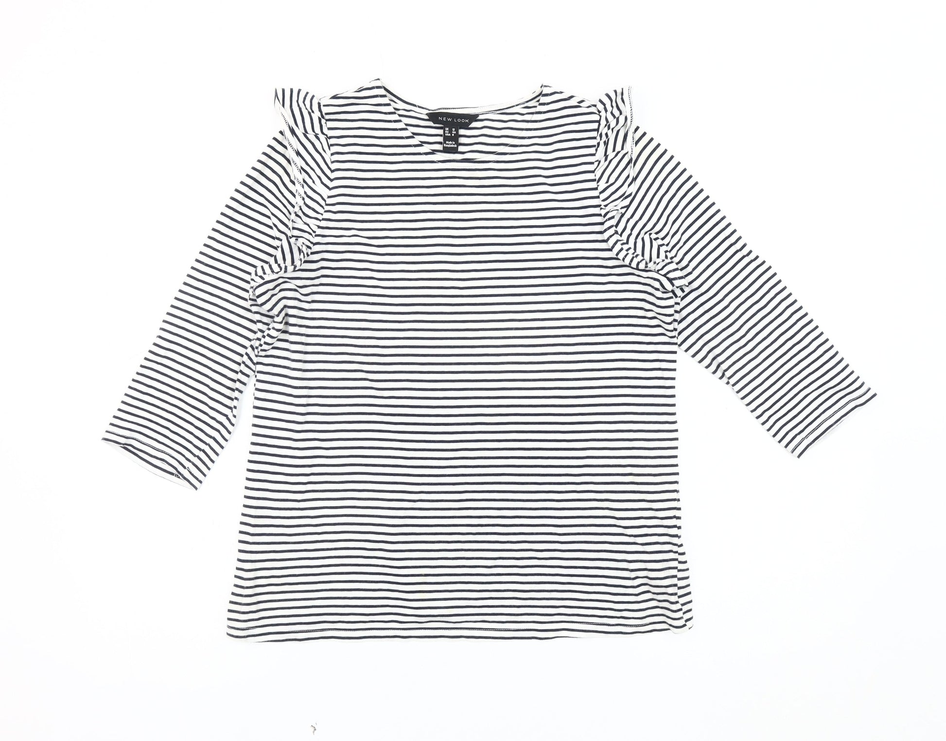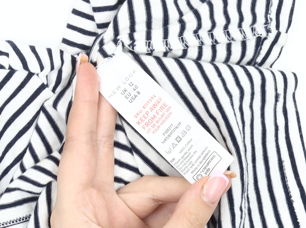 New Look Women's Black Striped T-Shirt - Size 12