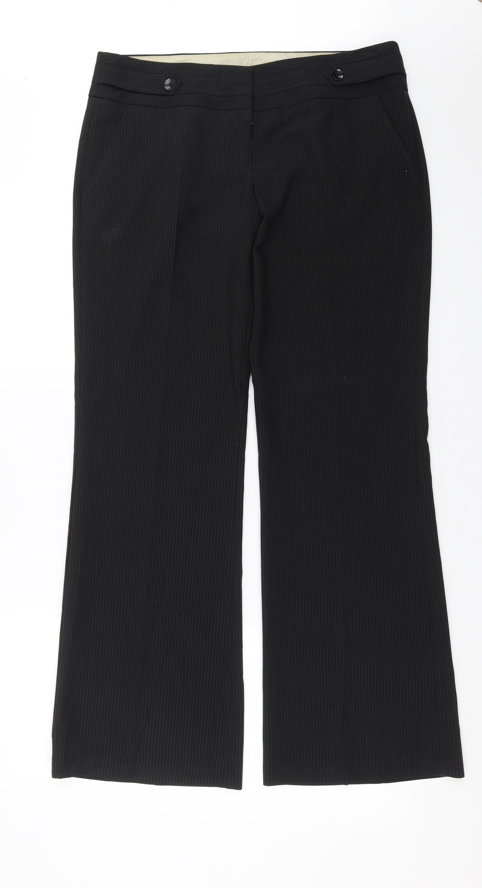 New Look Womens Black Striped Trousers Size 14 L31 in