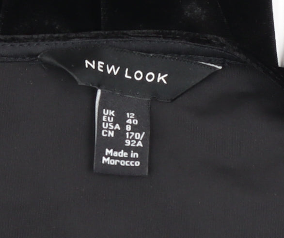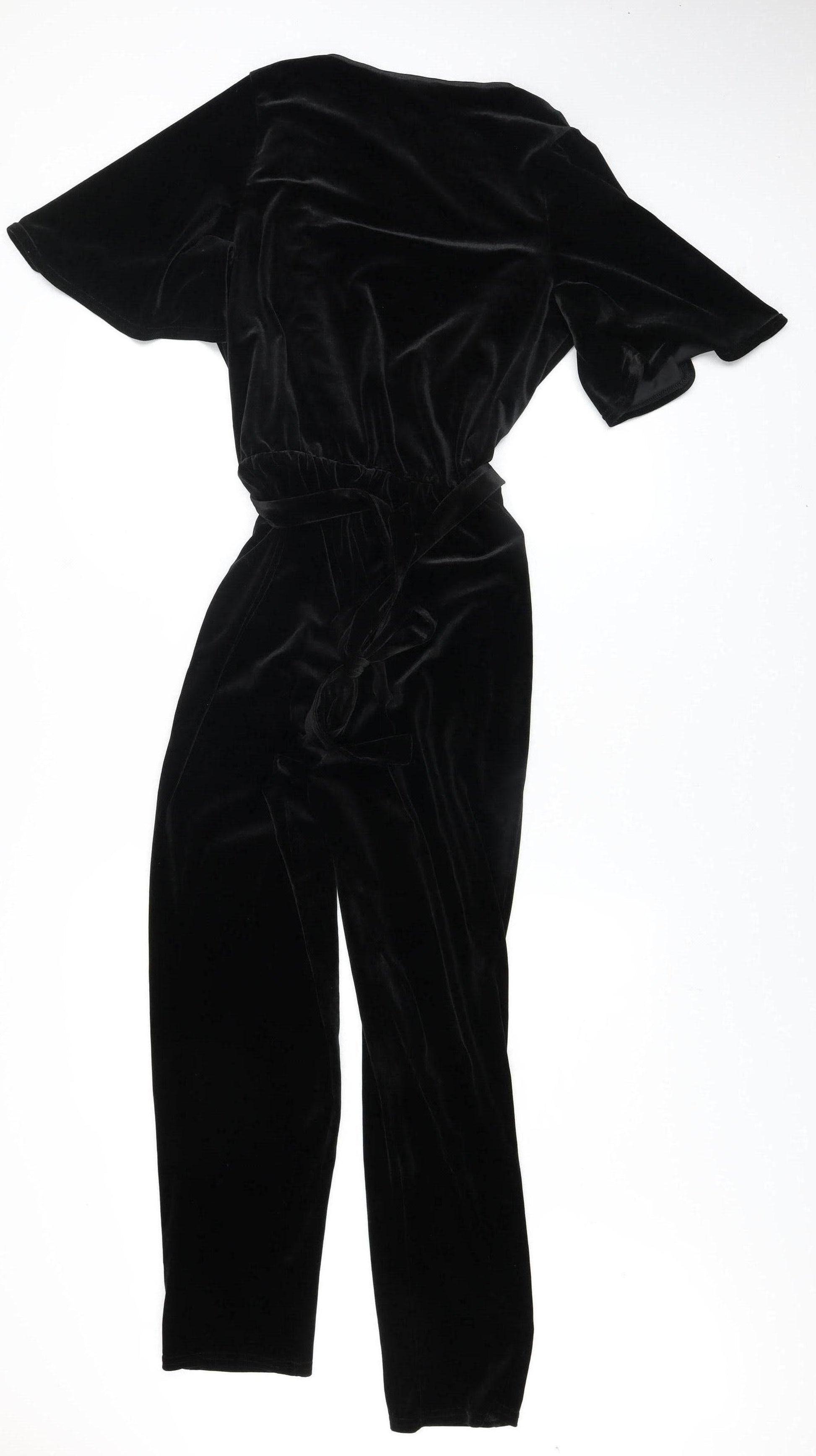 New Look Women's Black Velvet Jumpsuit UK 12 V-Neck Belted Wide-Leg