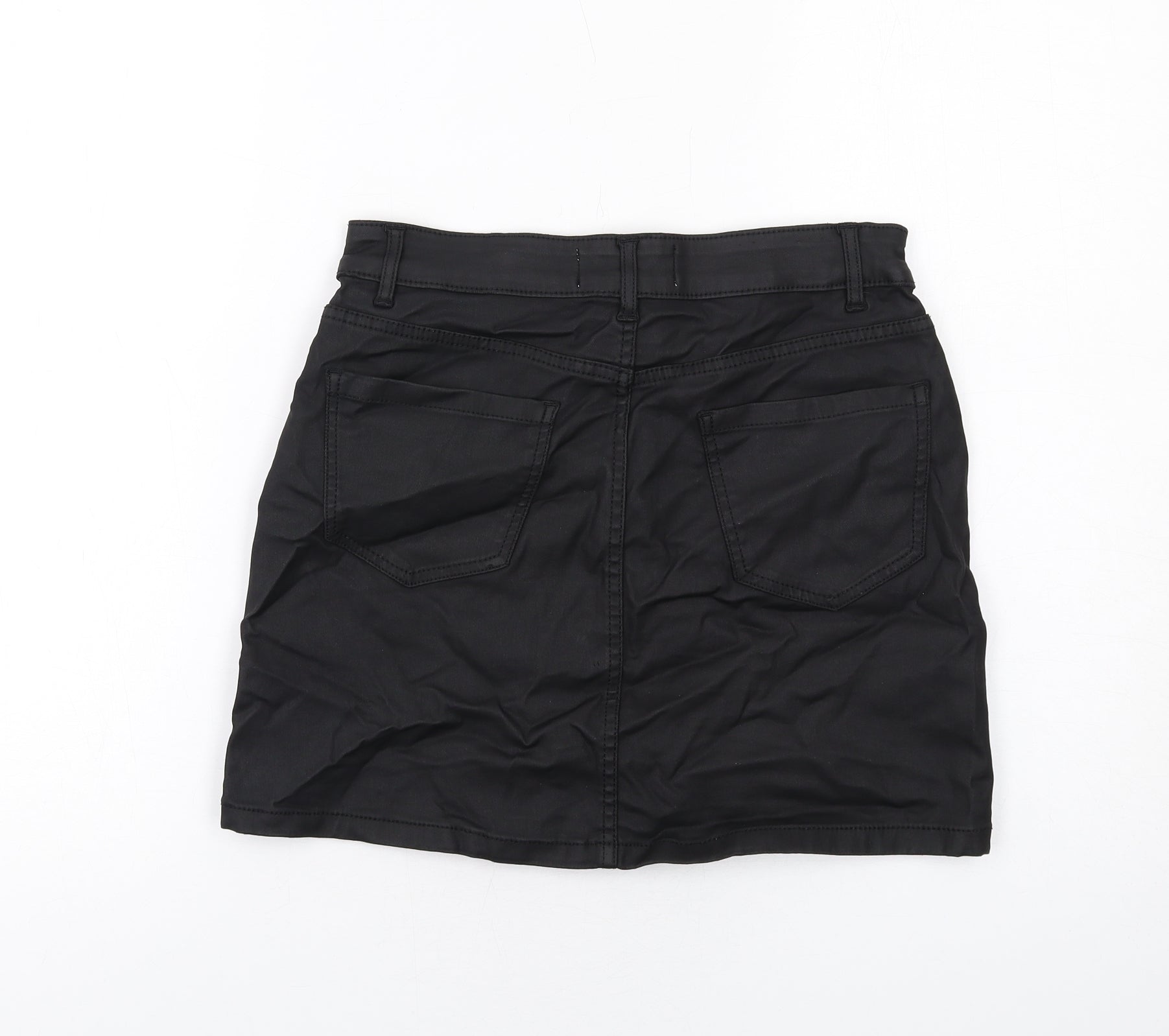 New Look Womens Black Viscose A-Line Skirt Size 8 Button