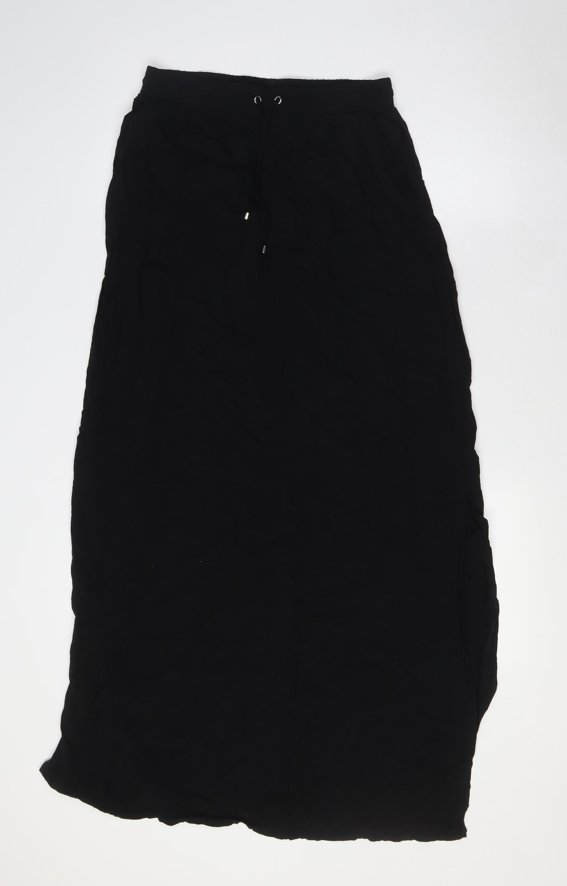 New Look Womens Black Viscose A-Line Skirt Size 8 Tie - Elasticated Waist