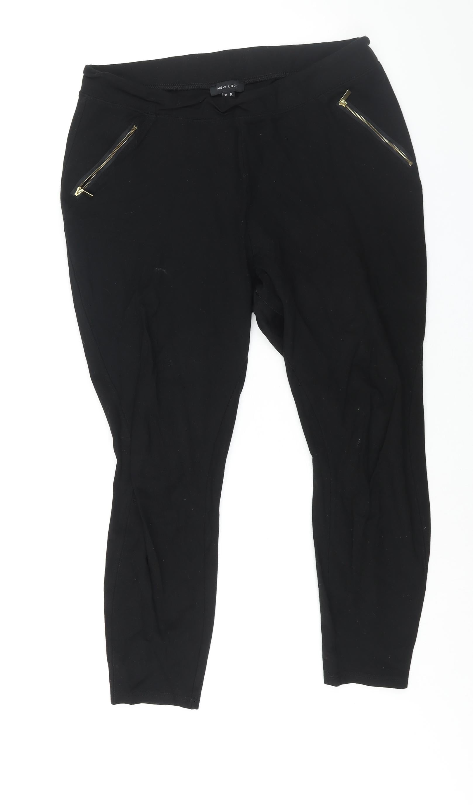 New Look Womens Black Viscose Trousers Size 16 L26 in Regular - Zip