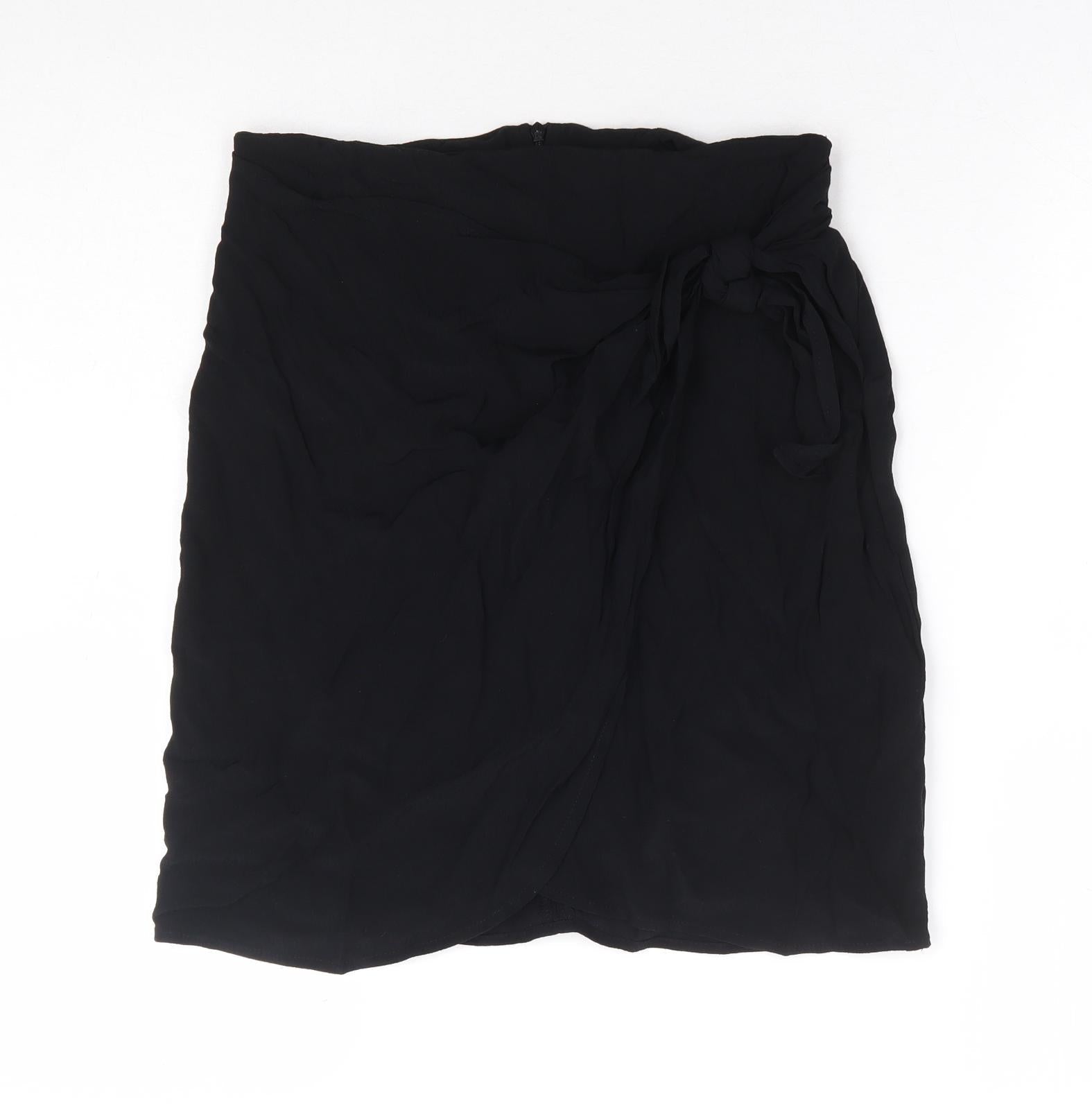 New Look Womens Black Viscose Wrap Skirt Zip - Faux Wrap
