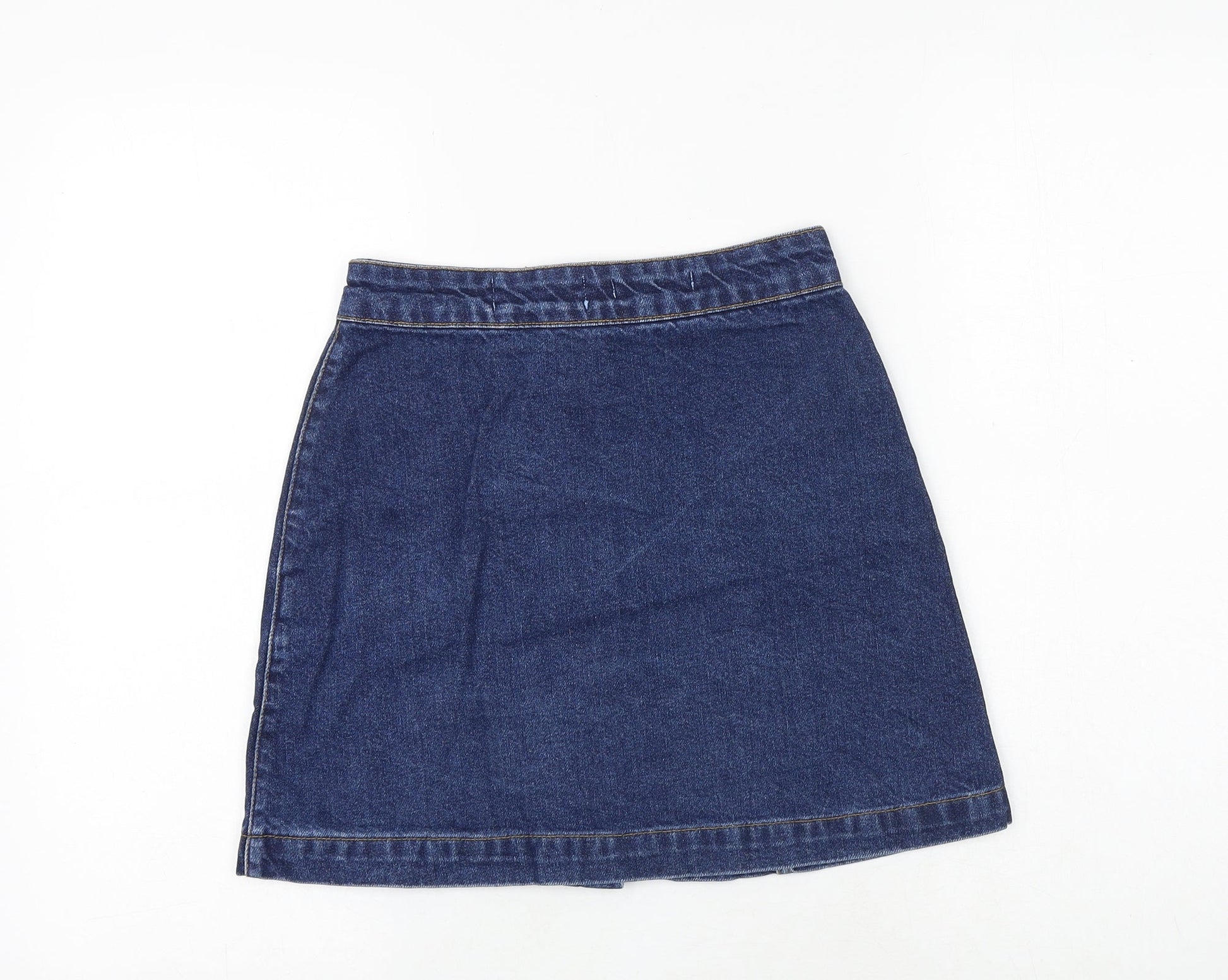 New Look Womens Blue Cotton A-Line Skirt Size 6 Button