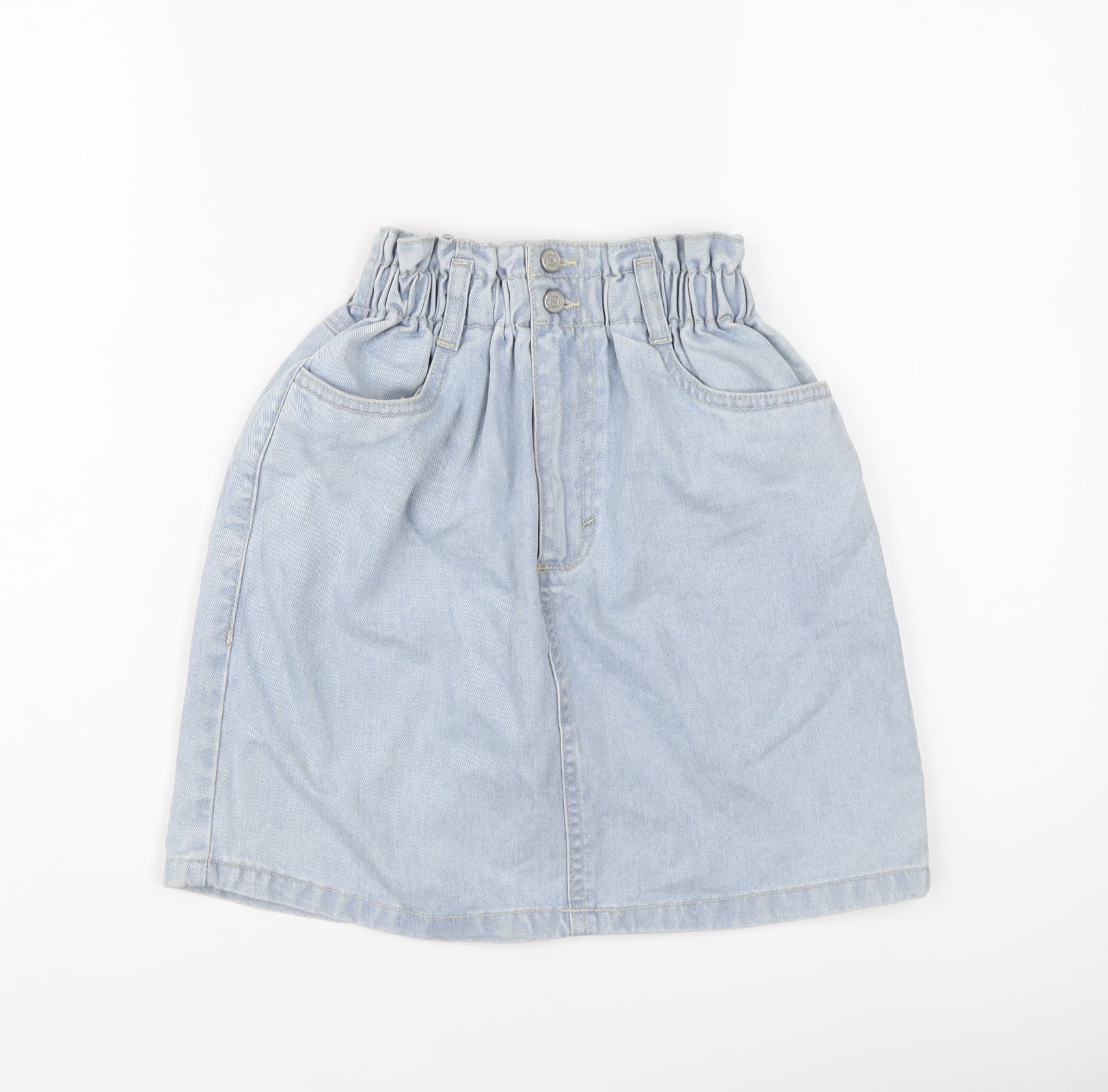 New Look Womens Blue Cotton A-Line Skirt Size 8 Button