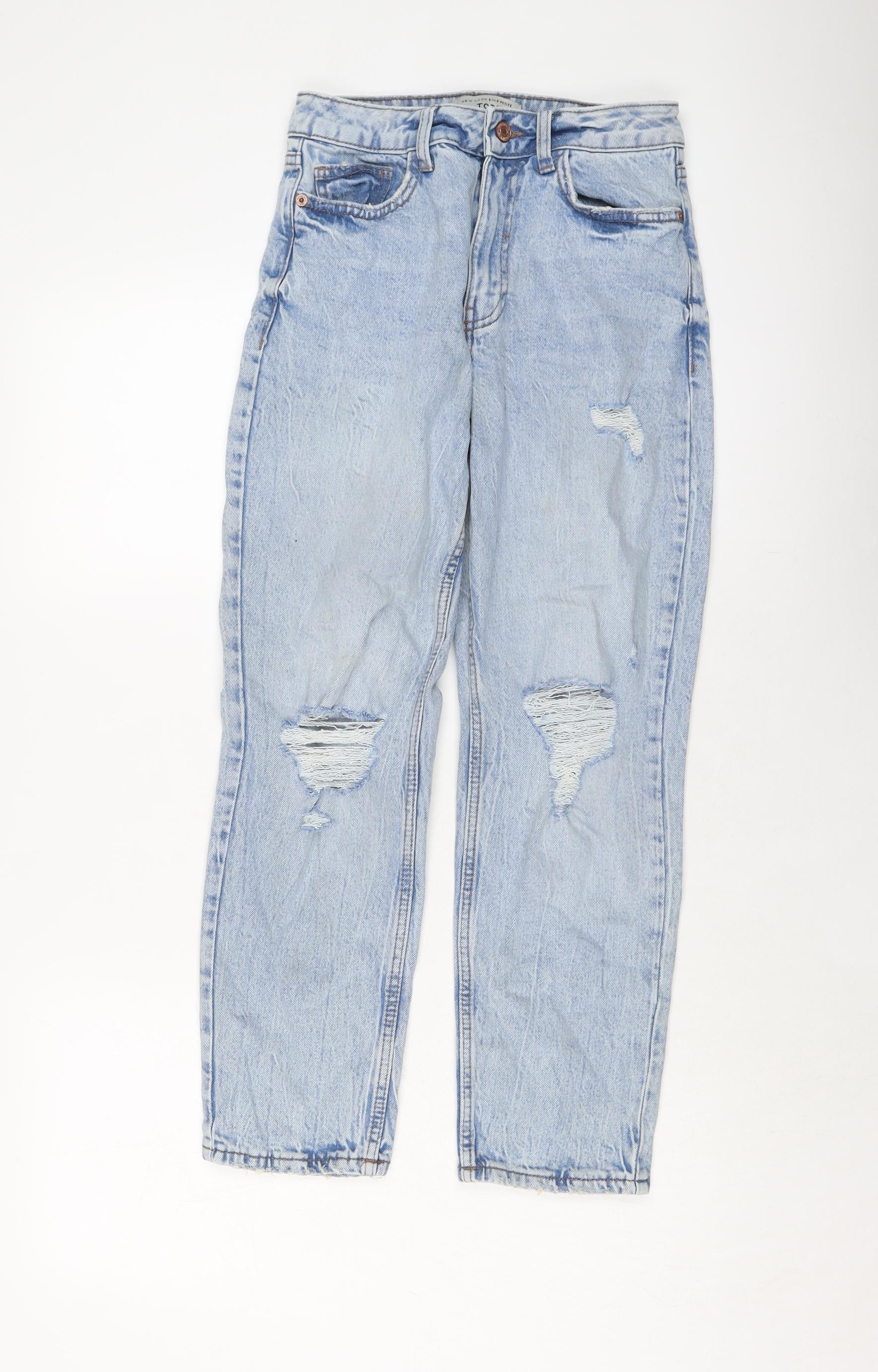 New Look Womens Blue Cotton Mom Jeans Size 6 L25 in Regular Button