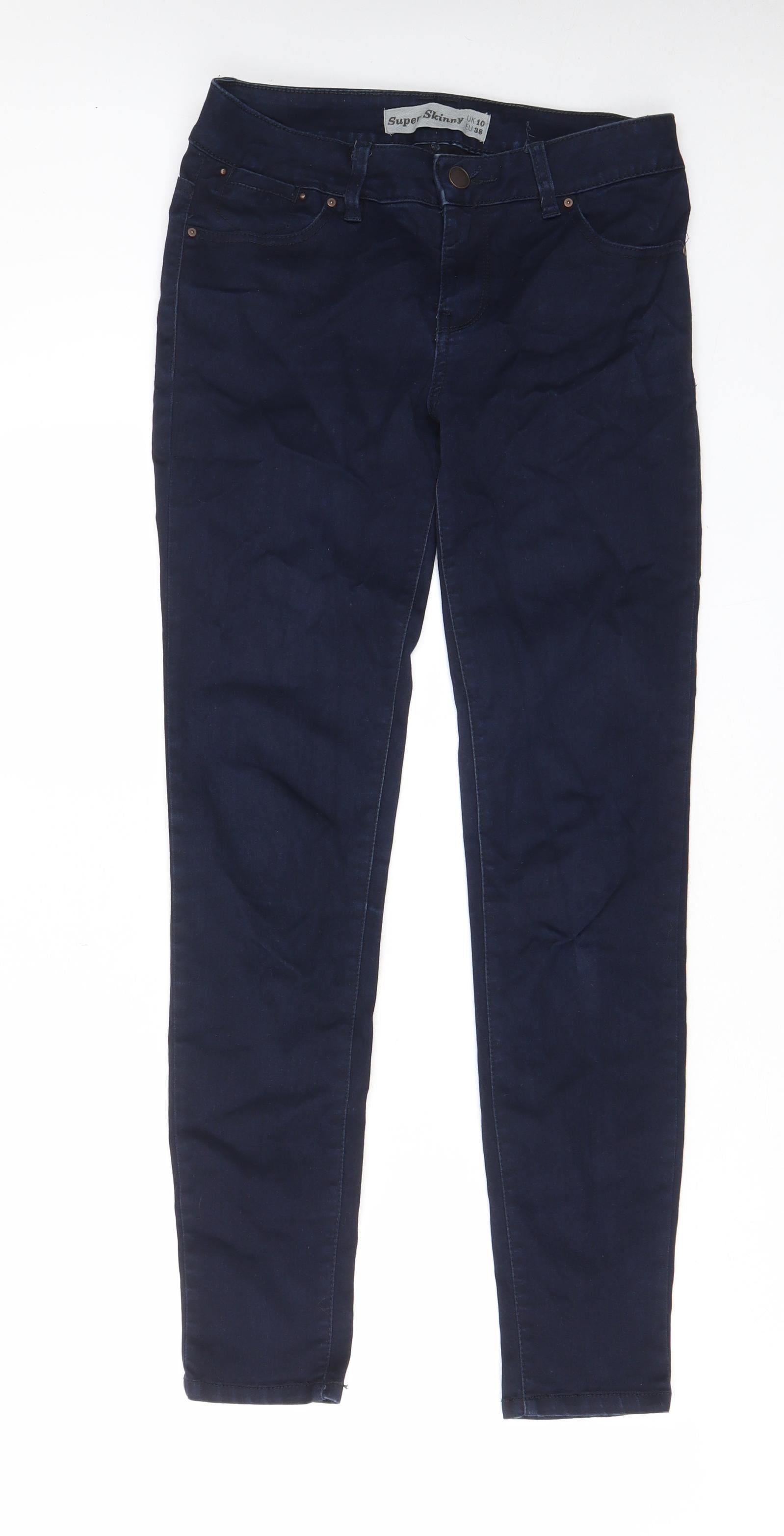 New Look Womens Blue Cotton Skinny Jeans Size 10 L29 in Regular Zip - Pockets, Belt Loops