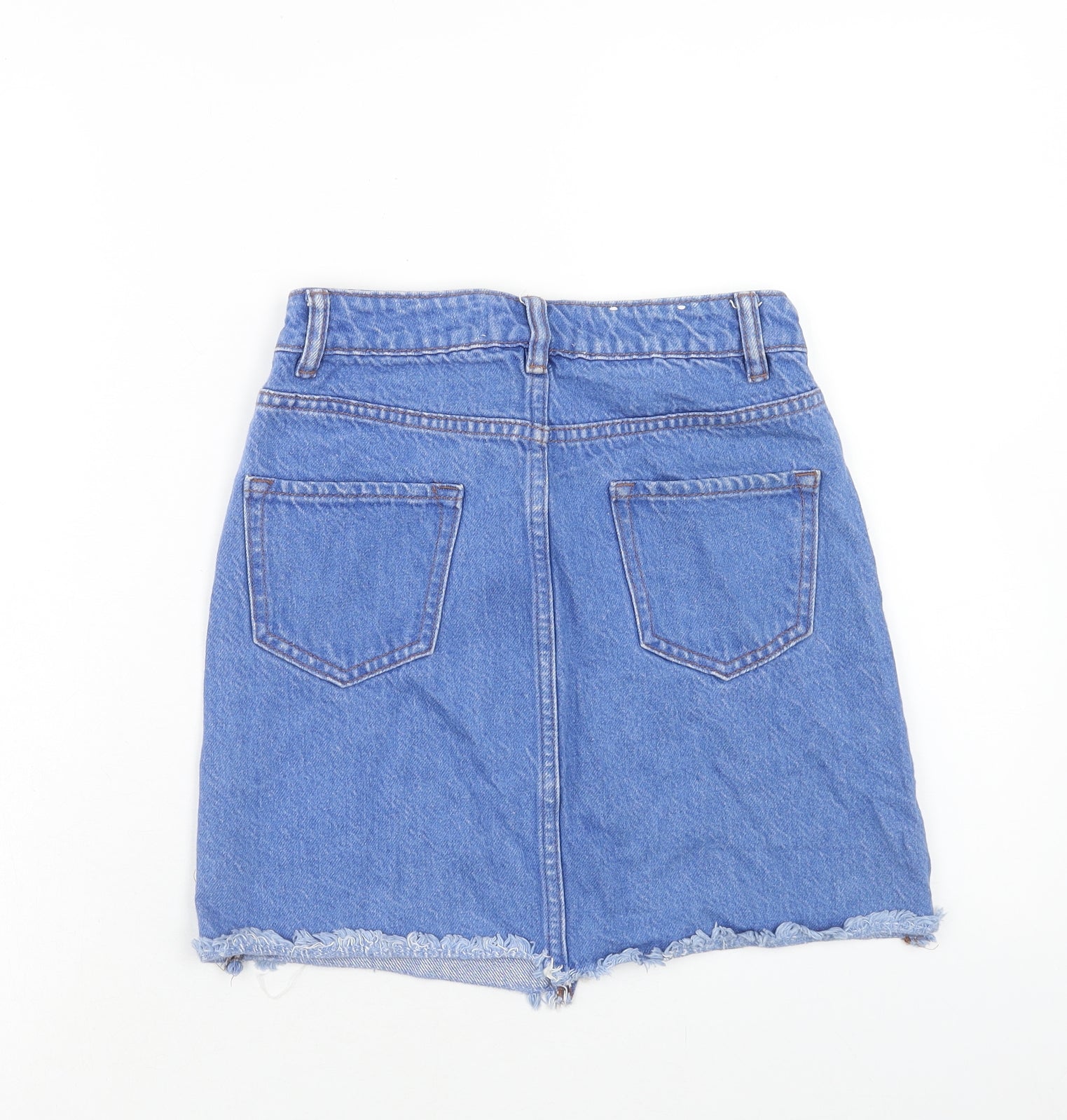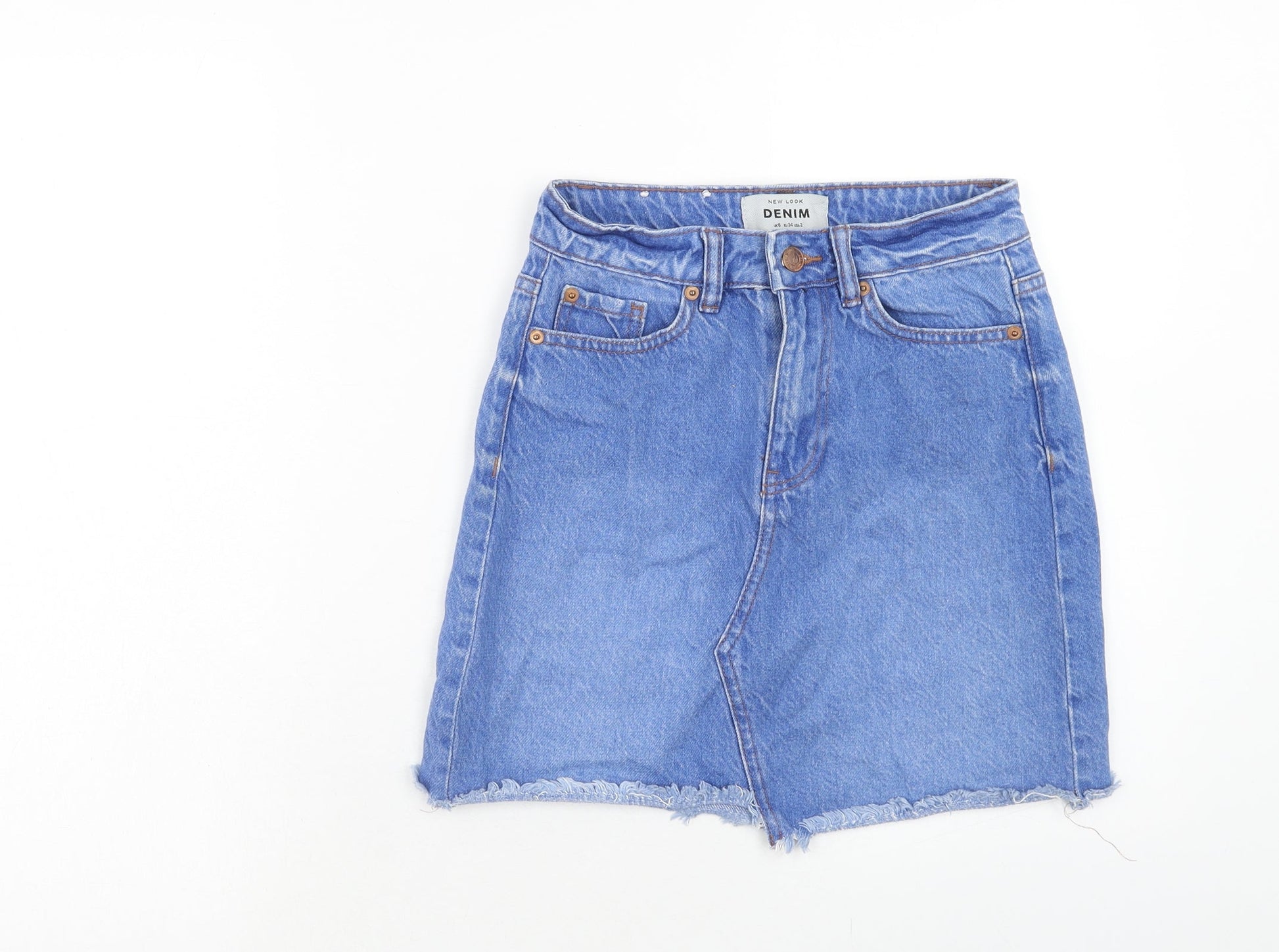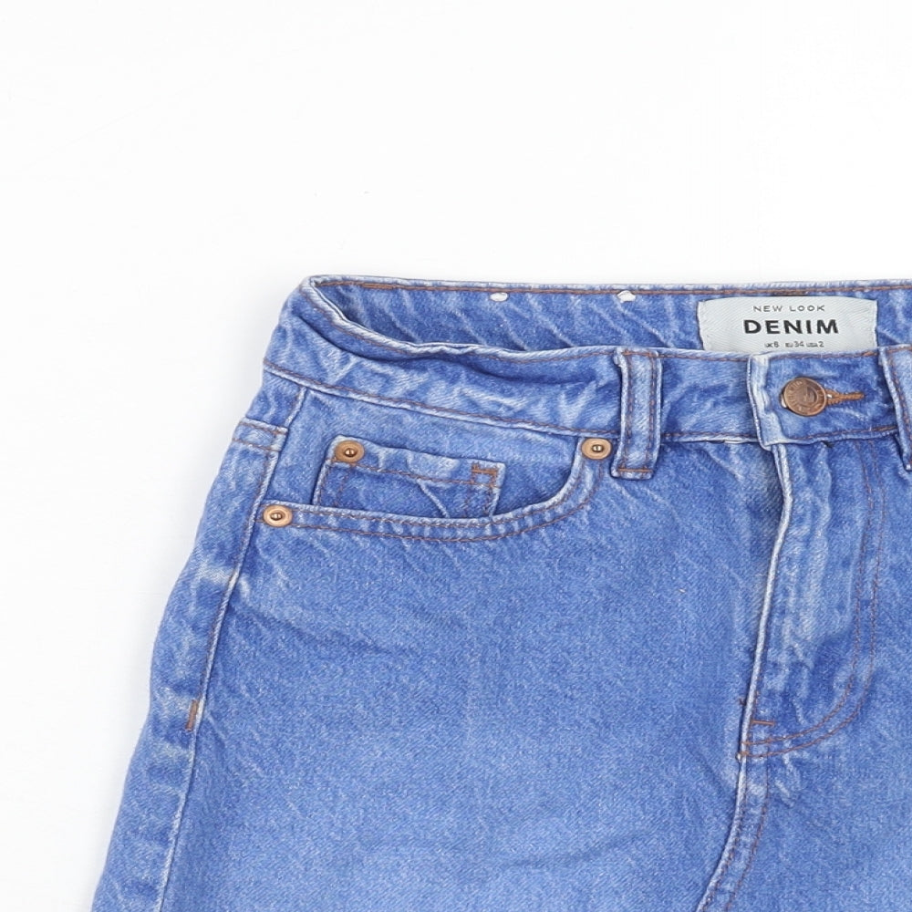 New Look Womens Blue Cotton Straight & Pencil Skirt Size 6 Zip