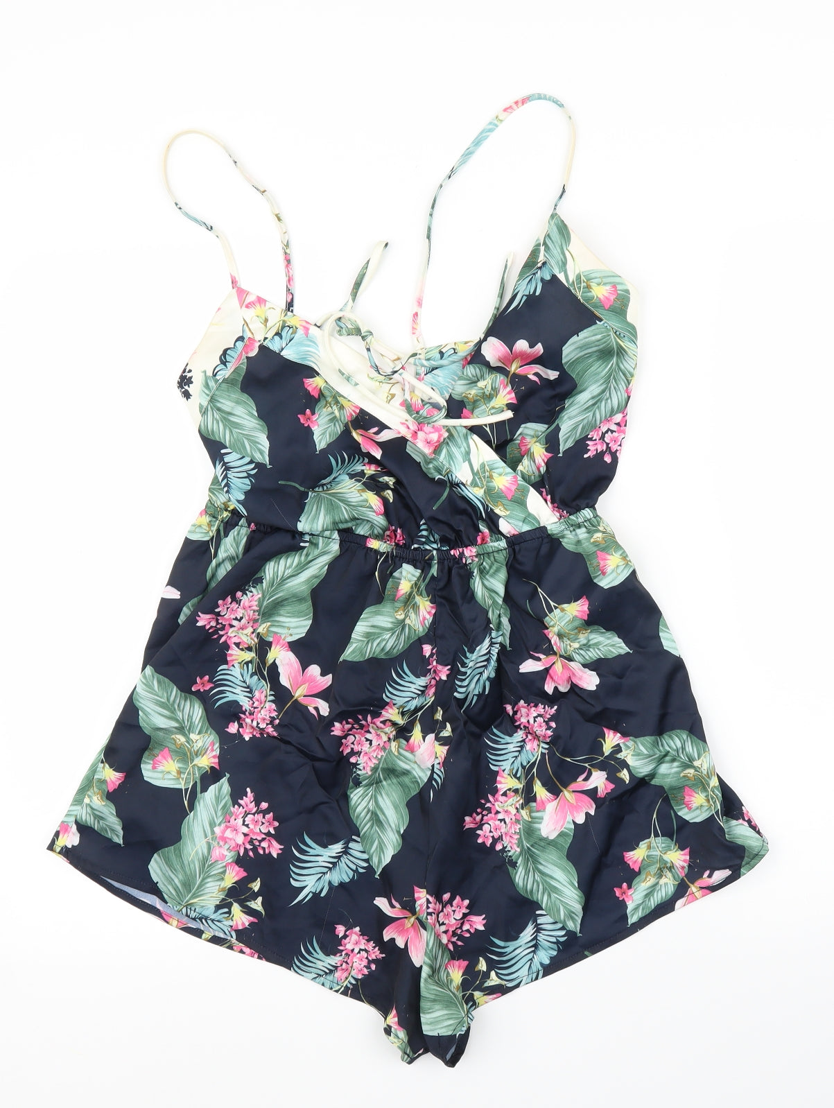 New Look Womens Blue Floral Romper One-Piece Size 12