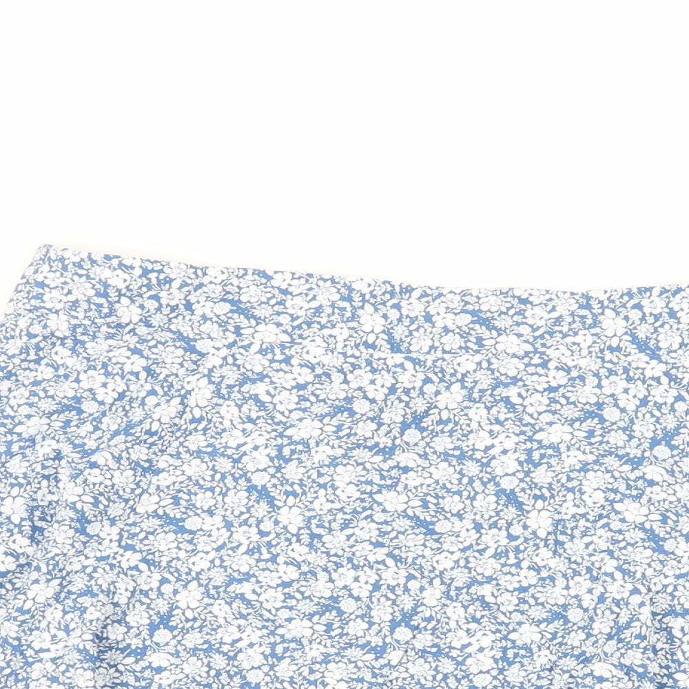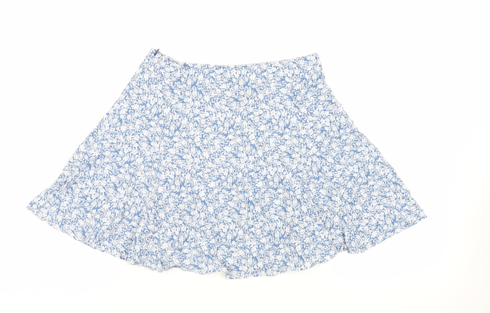 New Look Womens Blue Floral Viscose Skater Skirt Size 12 Zip