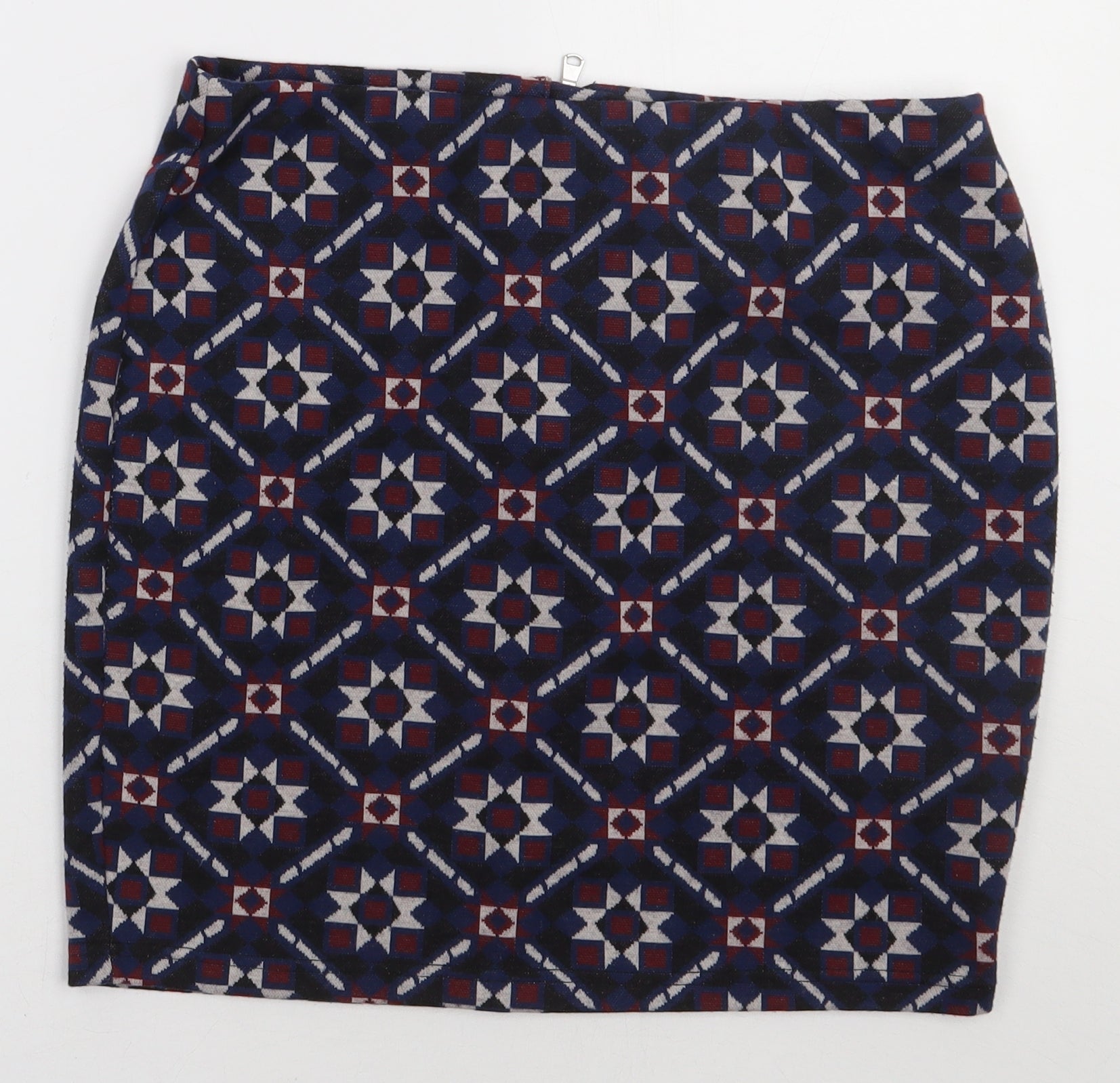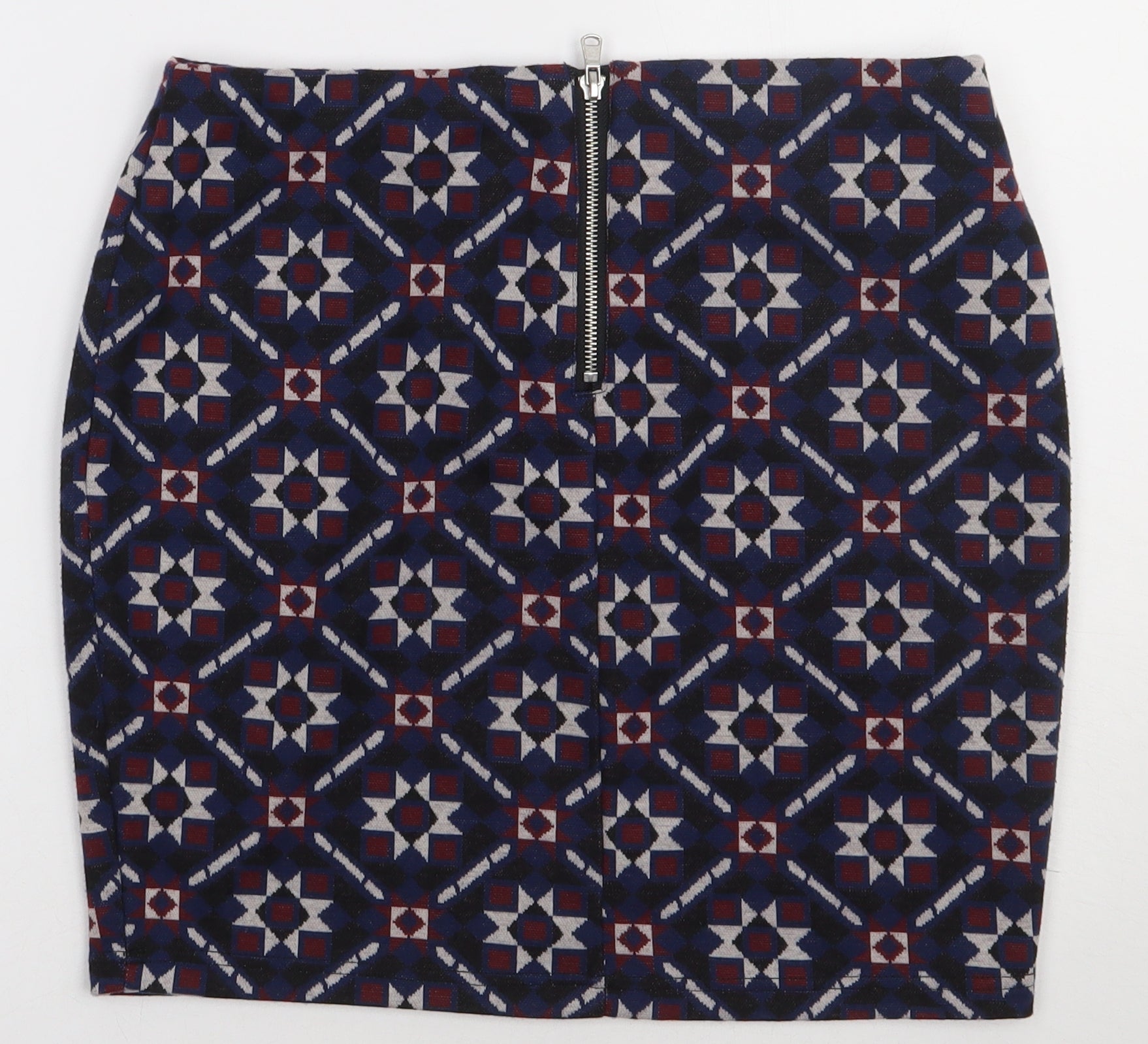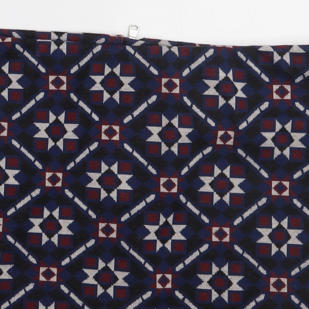New Look Womens Blue Geometric Polyester A-Line Skirt Size 12 Zip