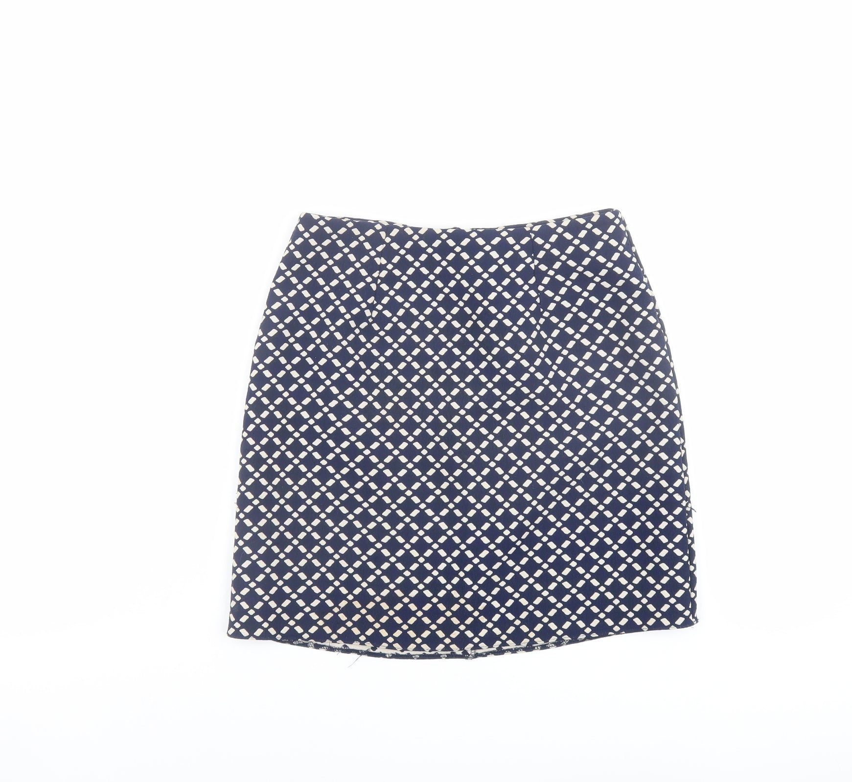 New Look Womens Blue Geometric Polyester A-Line Skirt Size 6 Zip