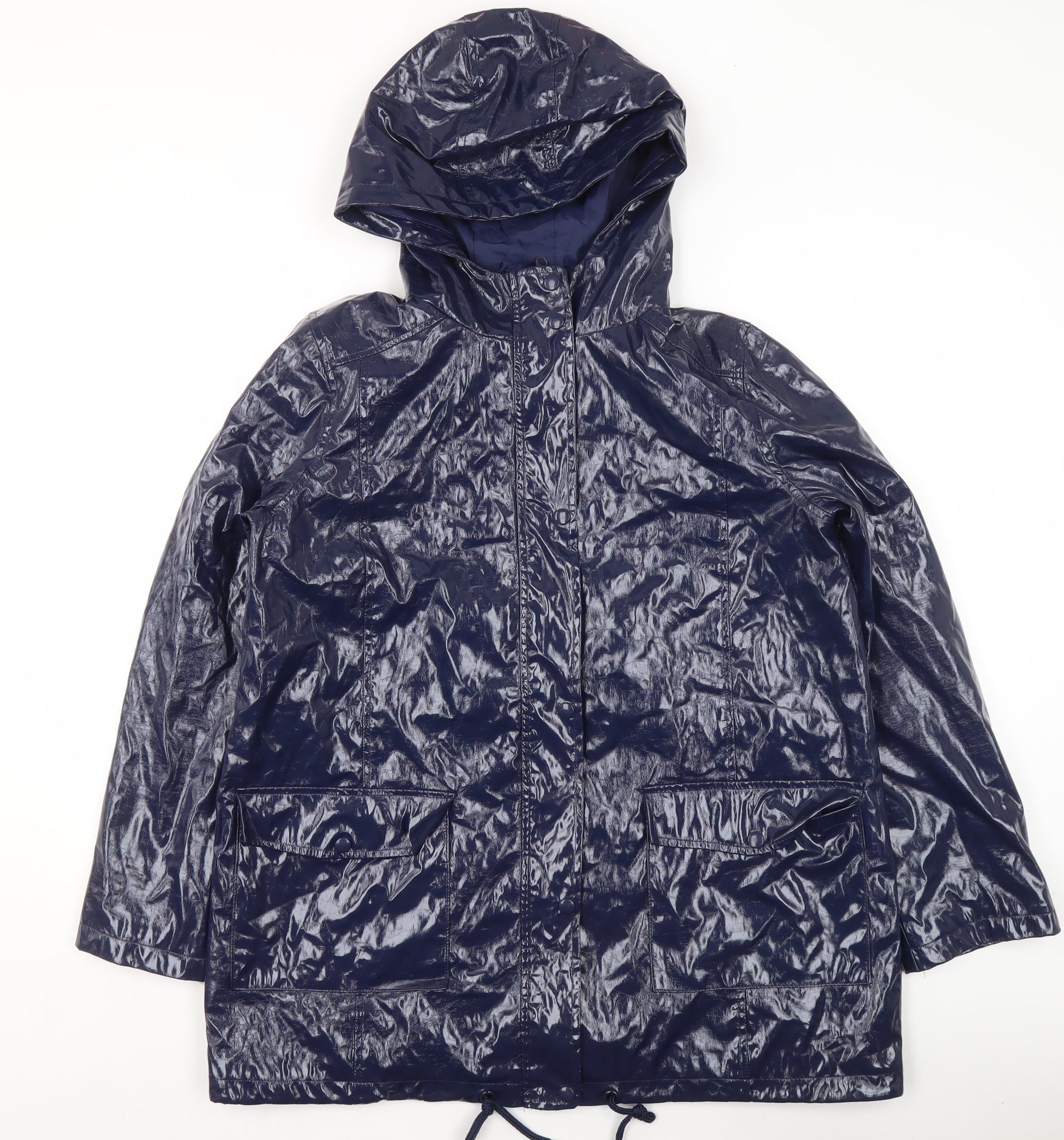 New Look Womens Blue Hooded Mid-Length Waterproof Rain Coat Size 14