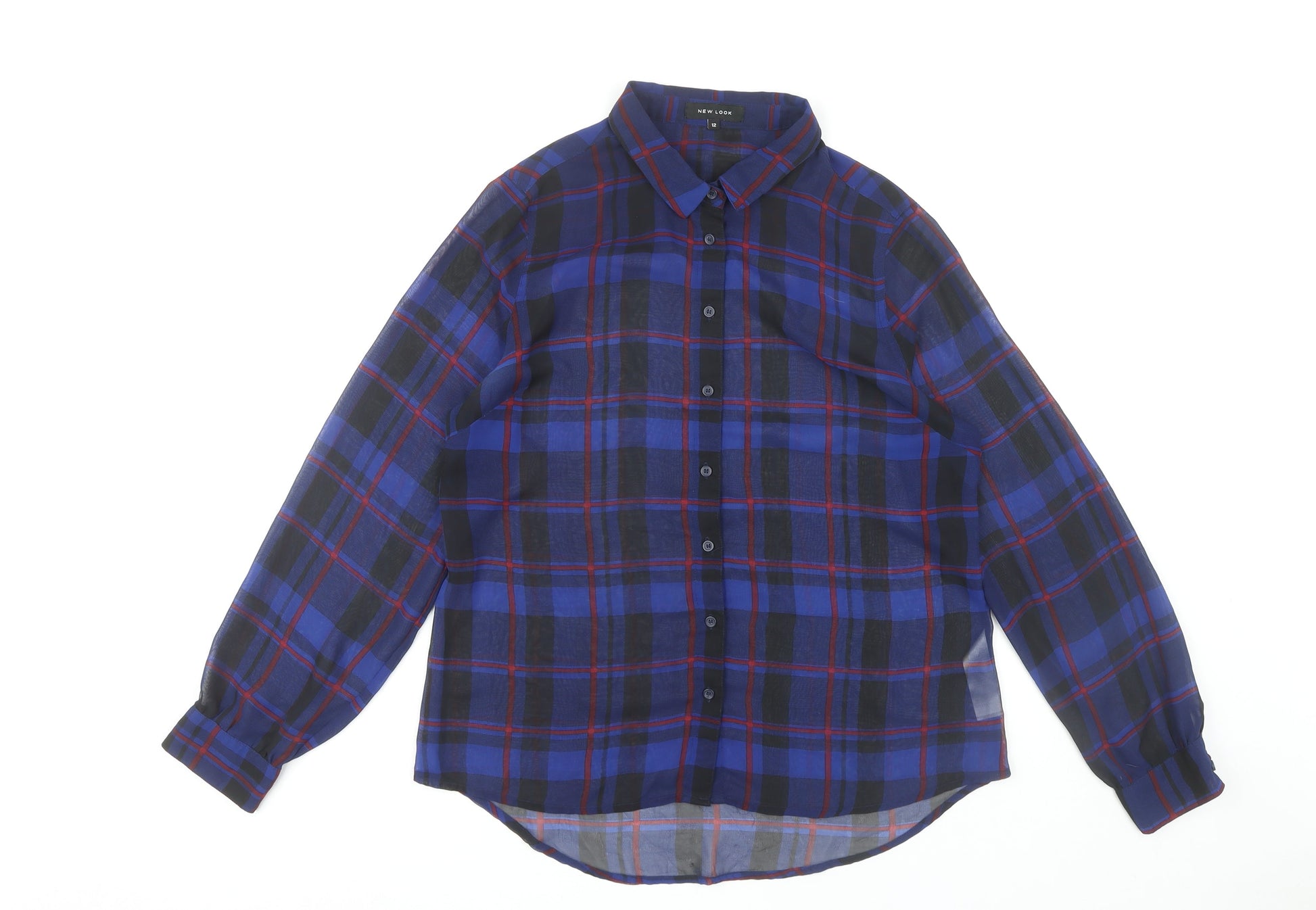 New Look Women's Blue Plaid Button-Up Shirt Size 12