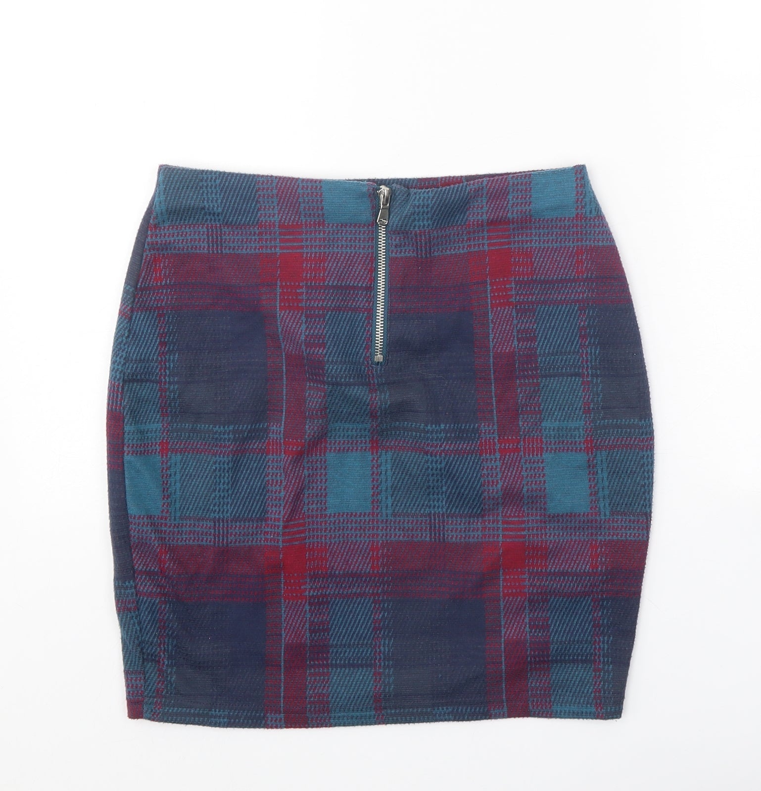 New Look Womens Blue Plaid Polyester A-Line Skirt Size 8 Zip