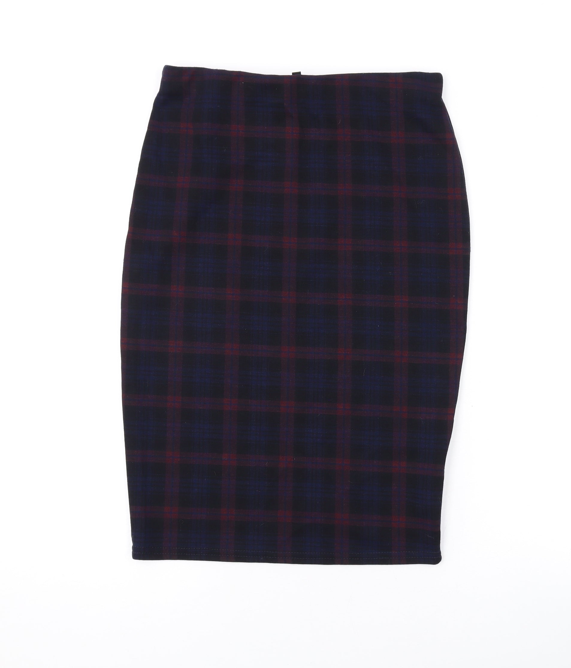 New Look Womens Blue Plaid Polyester Straight & Pencil Skirt Size 12