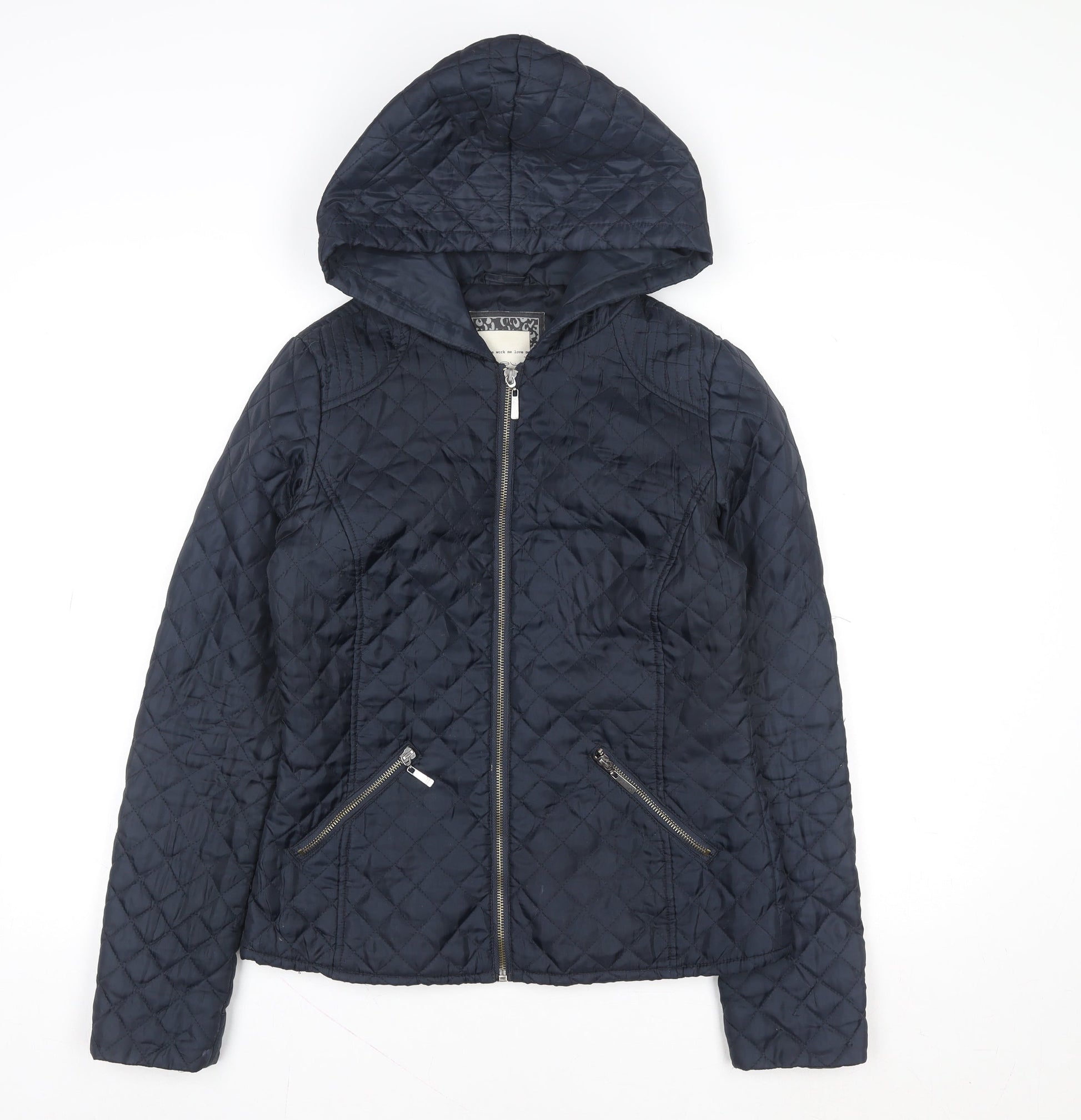 New Look Women's Blue Quilted Hooded Jacket Size 10