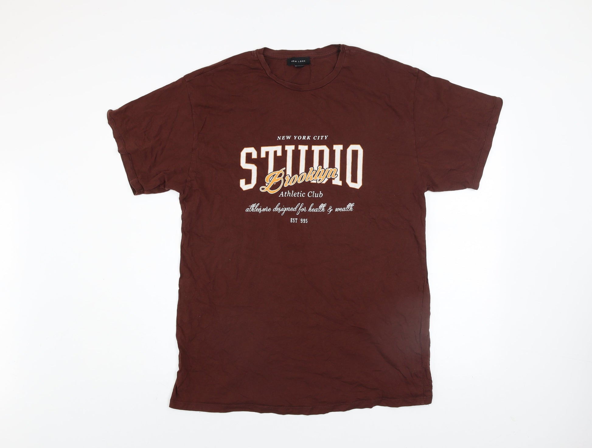 New Look Women's Brown Crew Neck Graphic T-Shirt Size 12