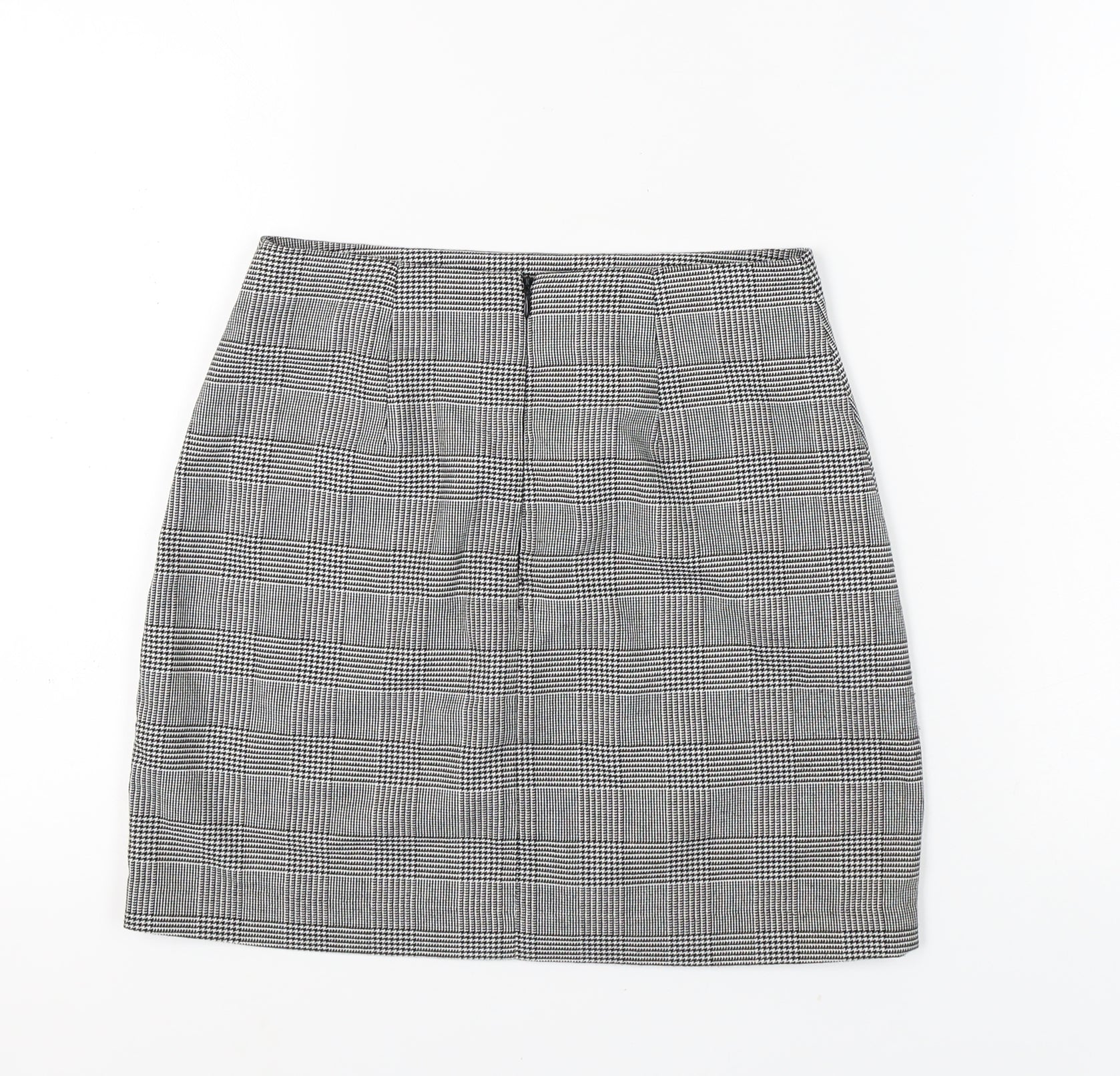 New Look Women's Check Pencil Skirt, Size 8, Black Grey