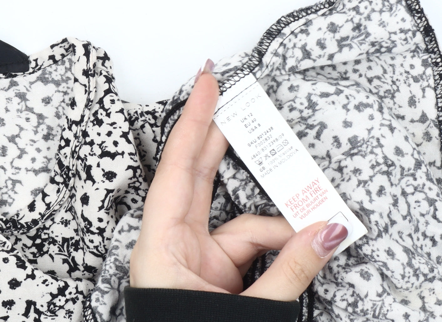 New Look Women's Floral Blouse Size 12, Puff Sleeve