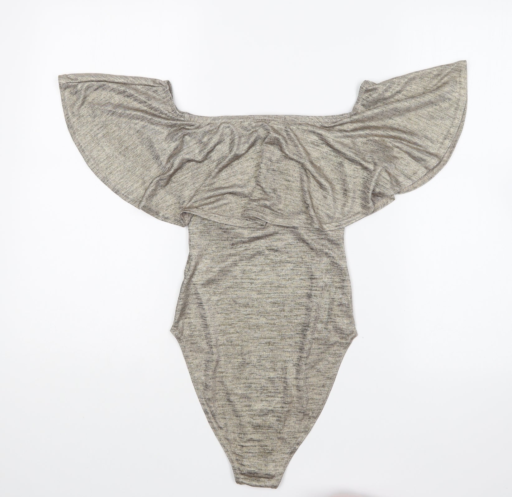 New Look Womens Gold Polyester Bodysuit One-Piece Size 10 Snap