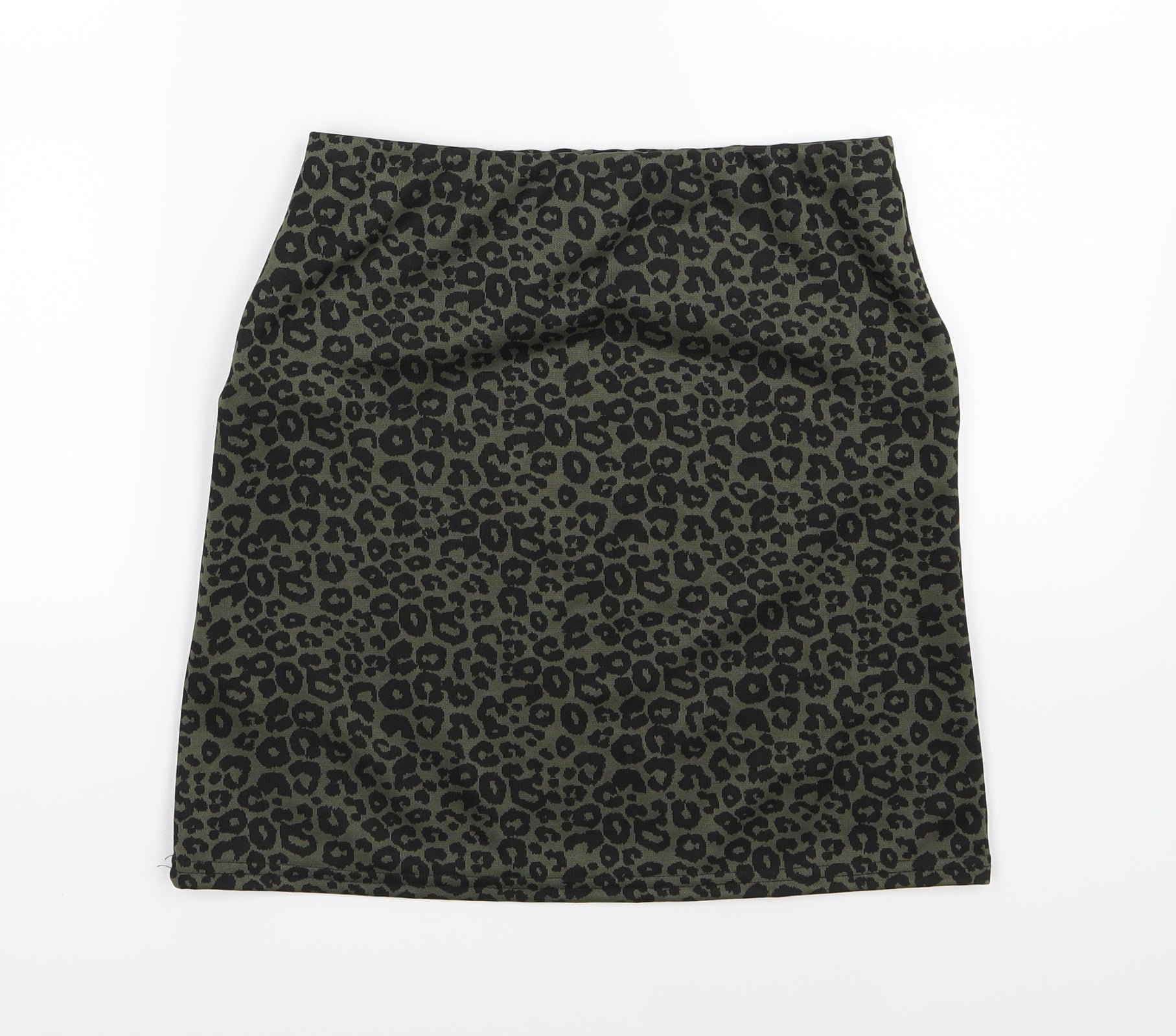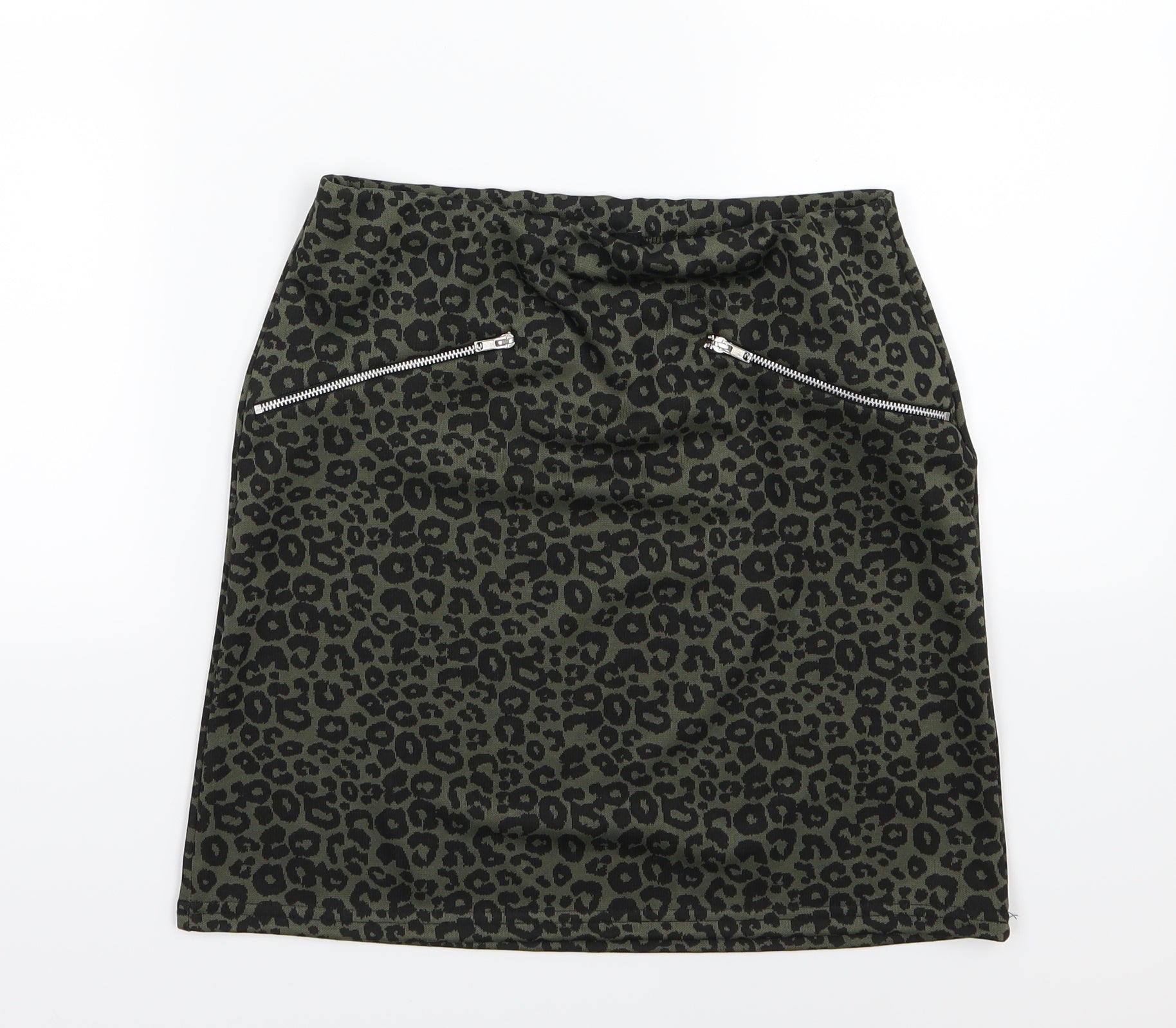New Look Womens Green Animal Print A-Line Skirt Size 8
