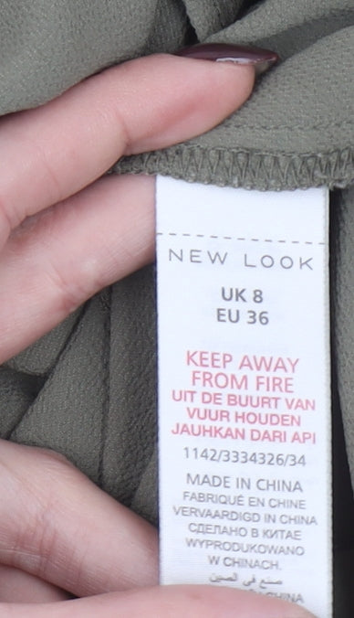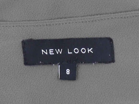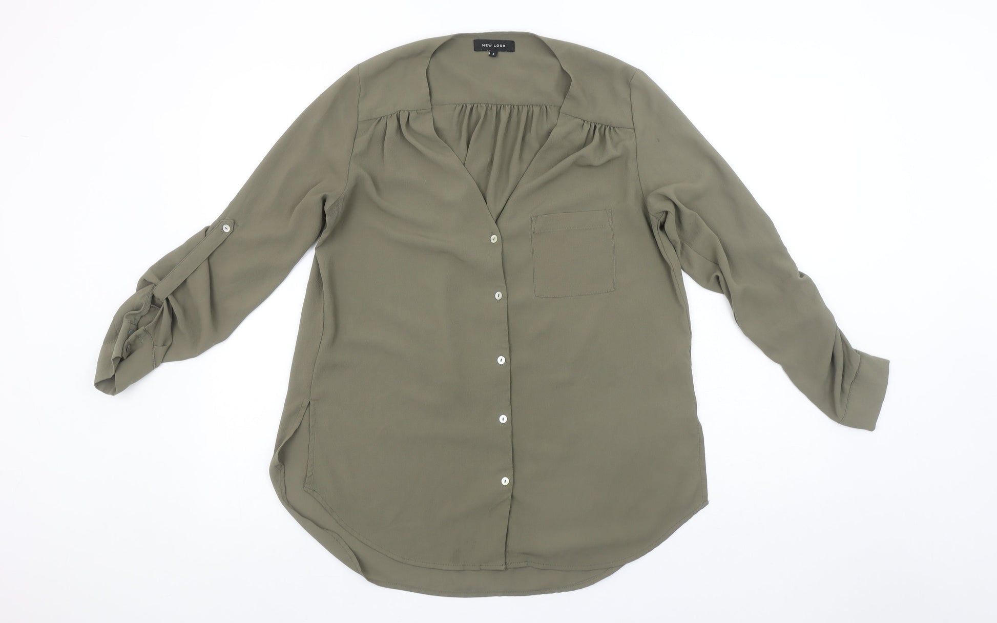 New Look Women's Green Button-Up V-Neck Long Sleeve Blouse Size 8
