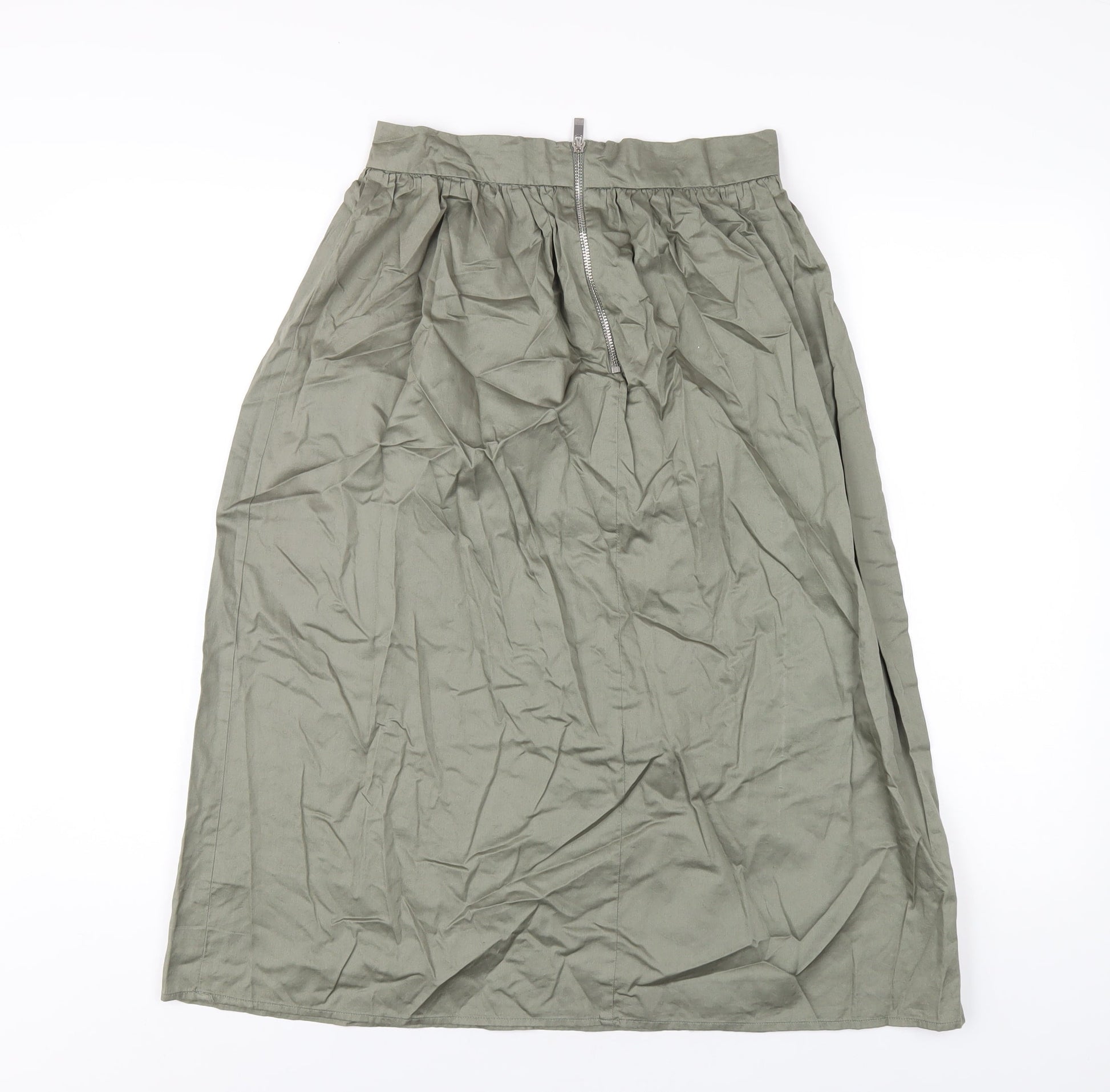 New Look Womens Green Cotton A-Line Skirt Size 8 Zip