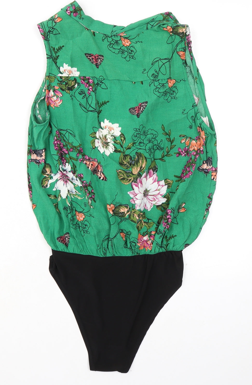 New Look Womens Green Floral Viscose Bodysuit One-Piece Size 8 Snap
