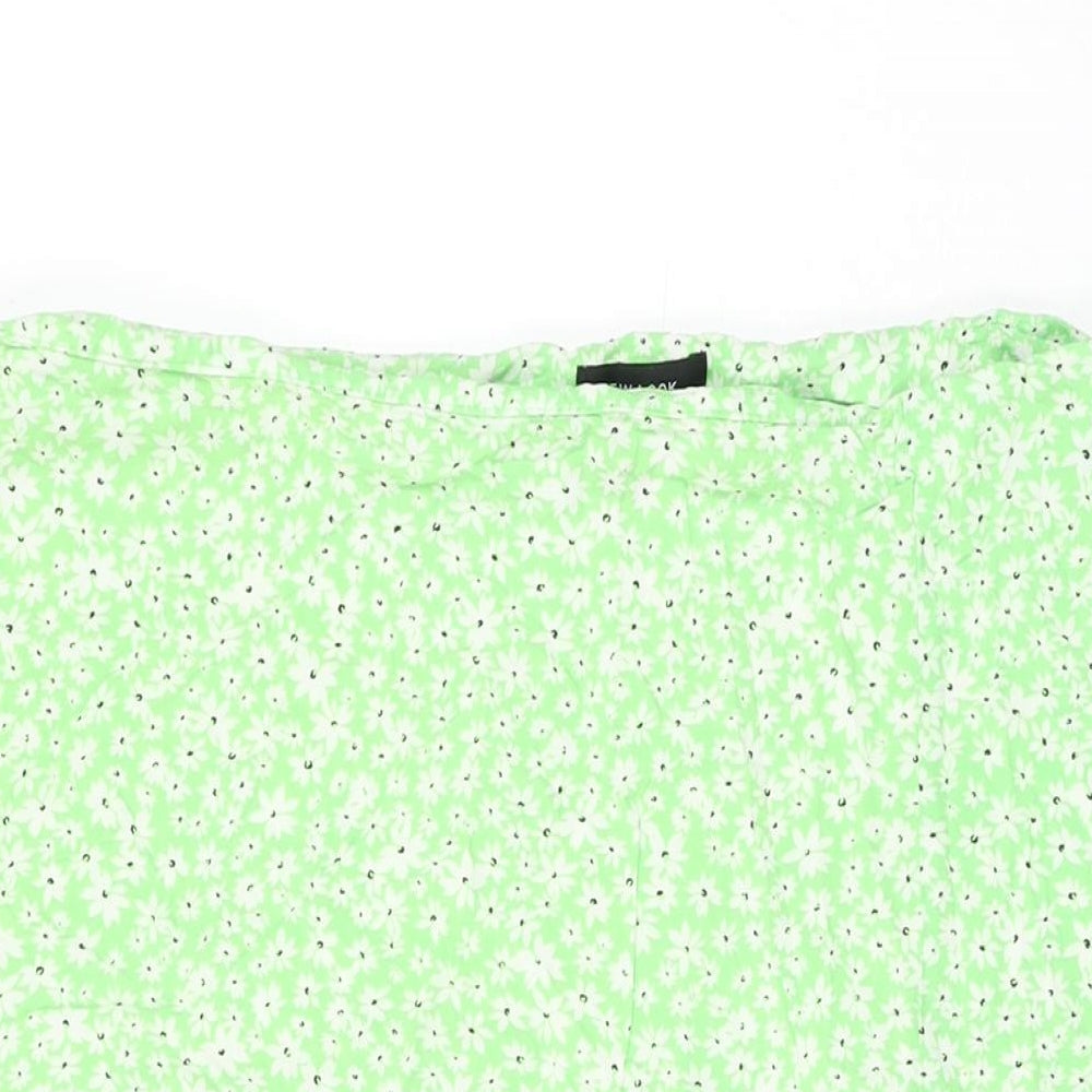 New Look Womens Green Floral Viscose Swing Skirt Size 20 Zip