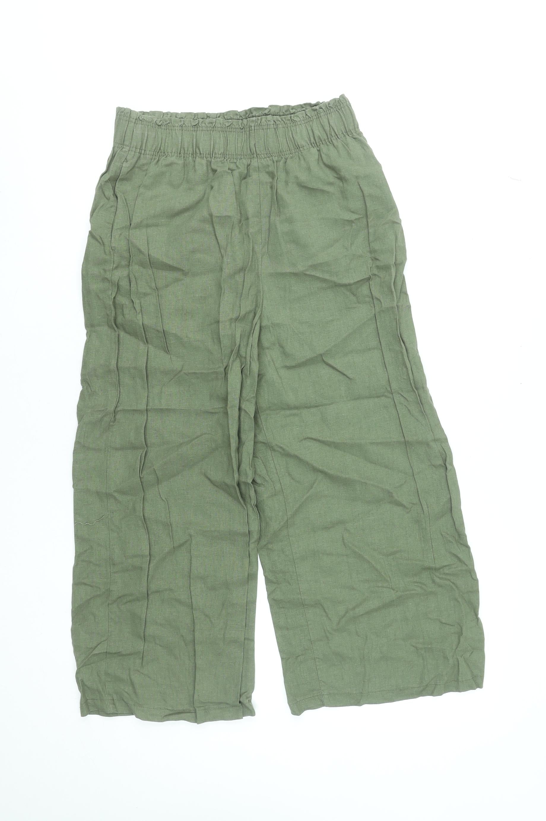 New Look Womens Green Linen Blend Wide-Leg Trousers Size 8