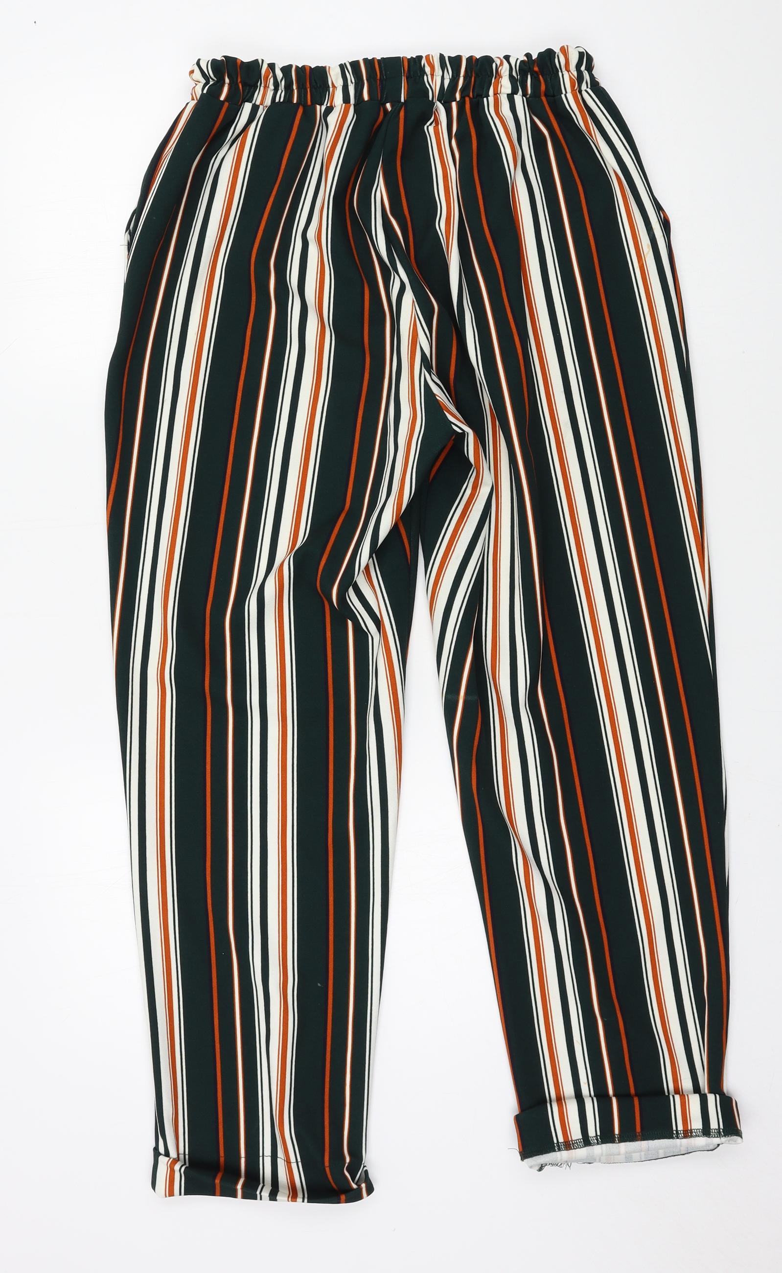 New Look Womens Green Striped Jersey Trousers Size 14 L25 in