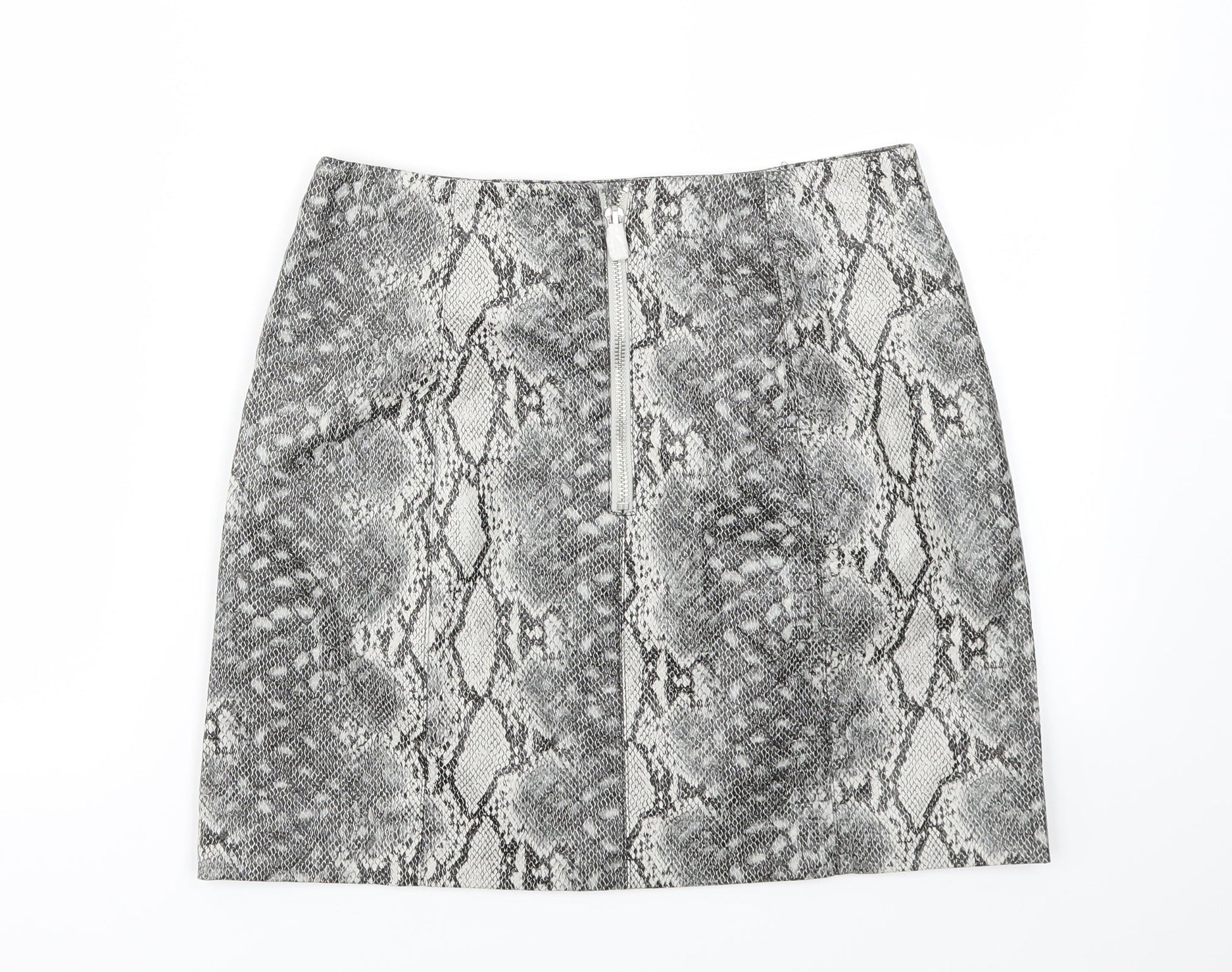 NEW LOOK Womens Grey Animal Print A-Line Skirt Size 8