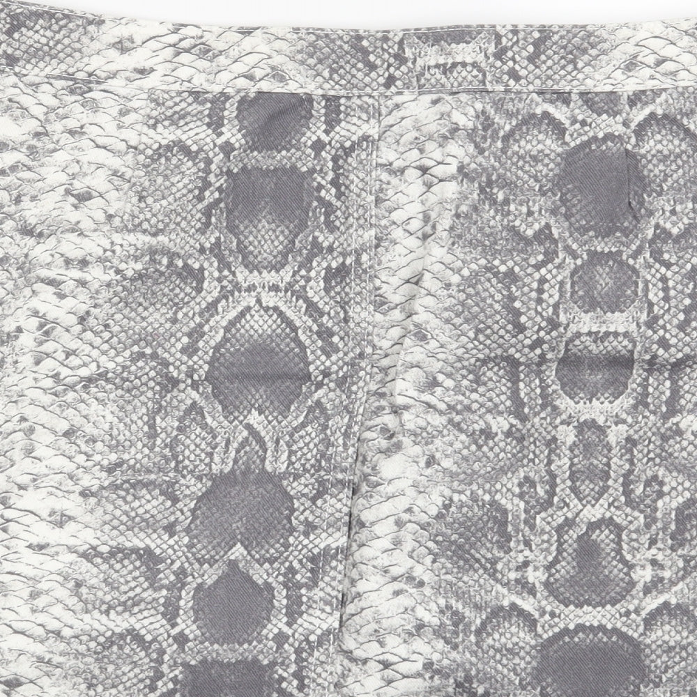 New Look Womens Grey Animal Print Mini Skirt Size 10
