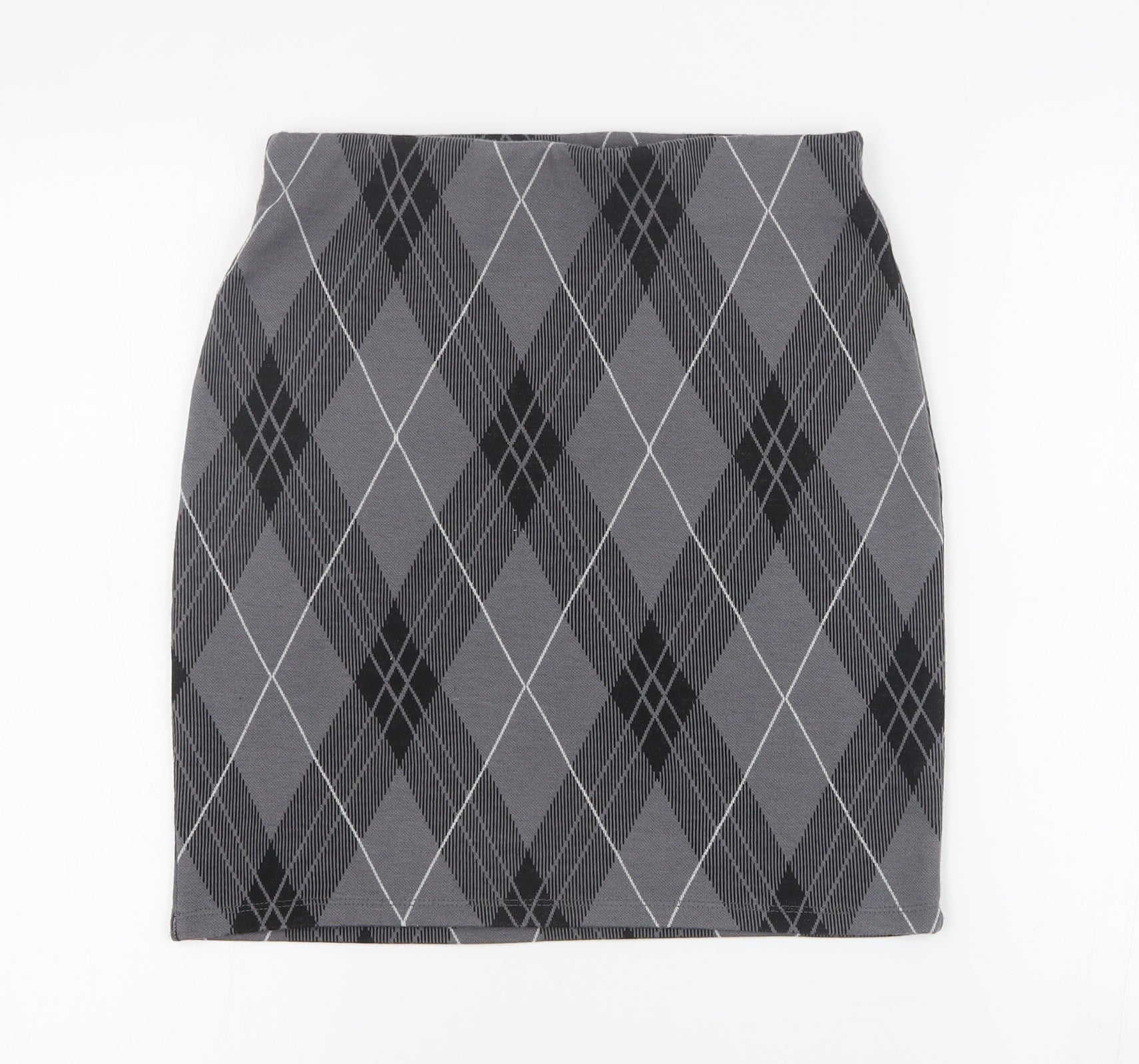 New Look Womens Grey Argyle/Diamond Polyester Mini Skirt Size 8