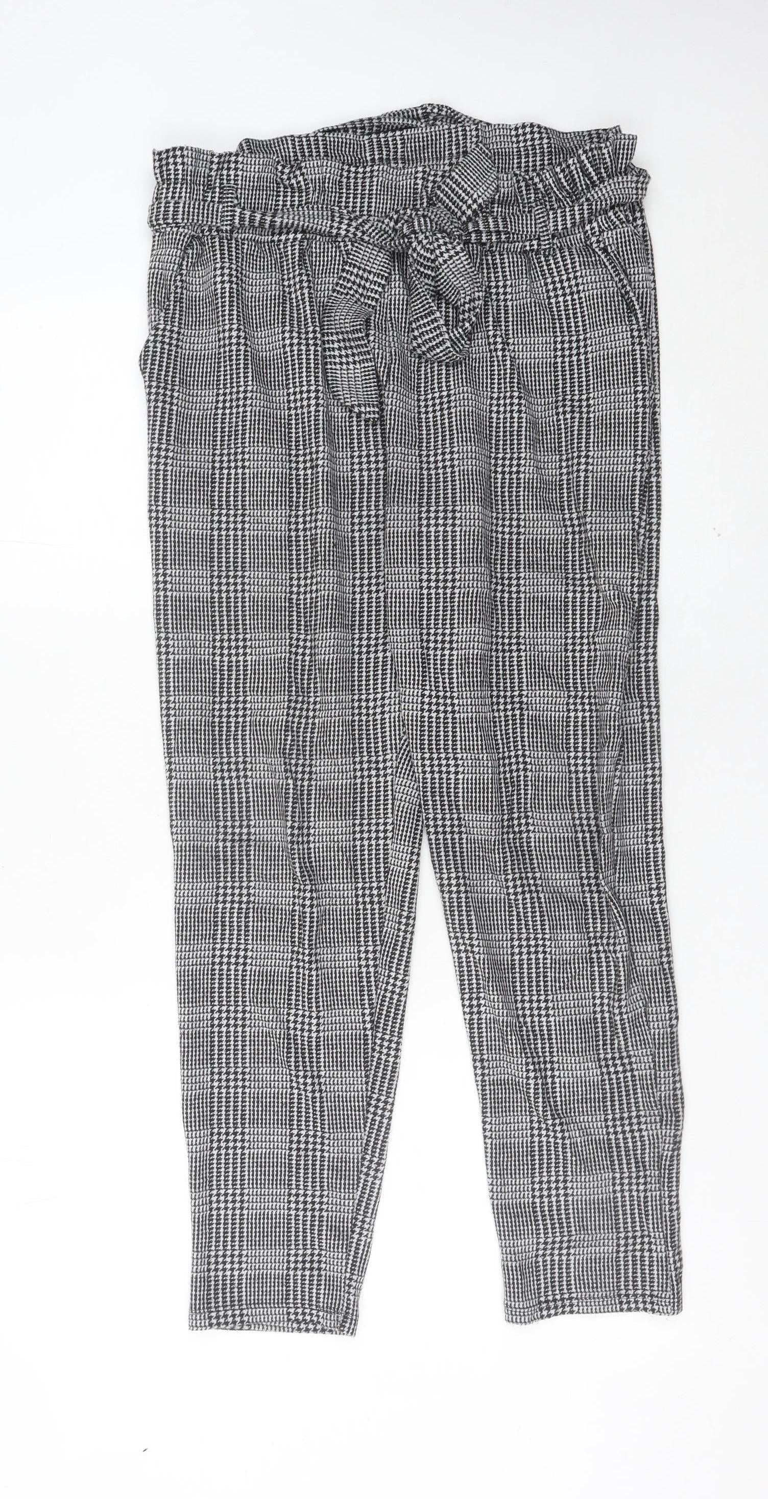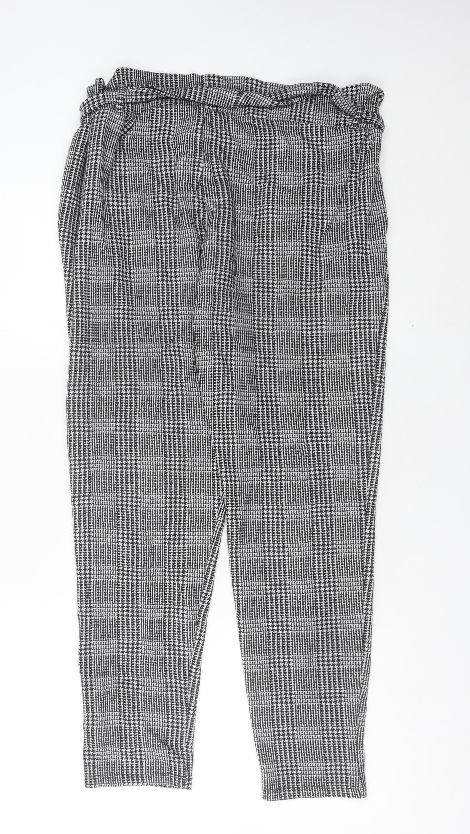 New Look Womens Grey Check Paperbag Trousers Size 10 Workwear