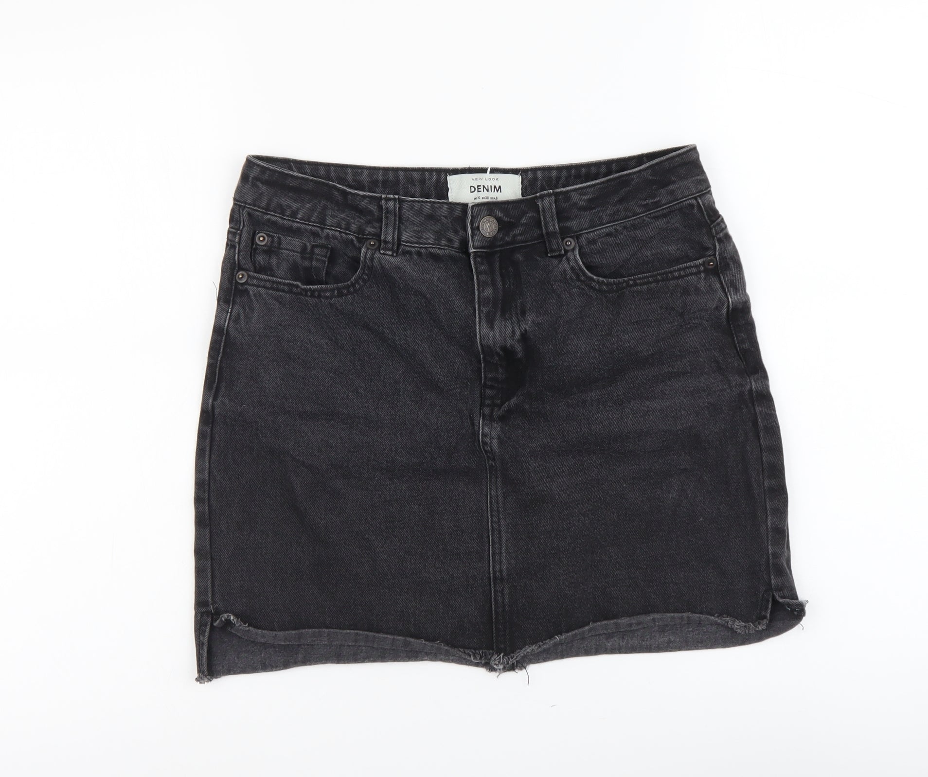 New Look Womens Grey Cotton Mini Skirt Size 10 Button